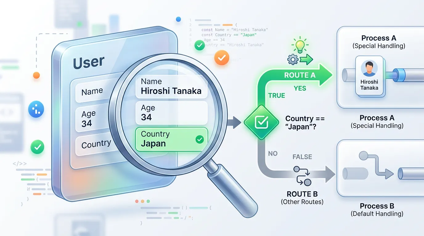 これにより、深い階層にあるデータに基づいた分岐も、平坦で読みやすい記述で実現できます。