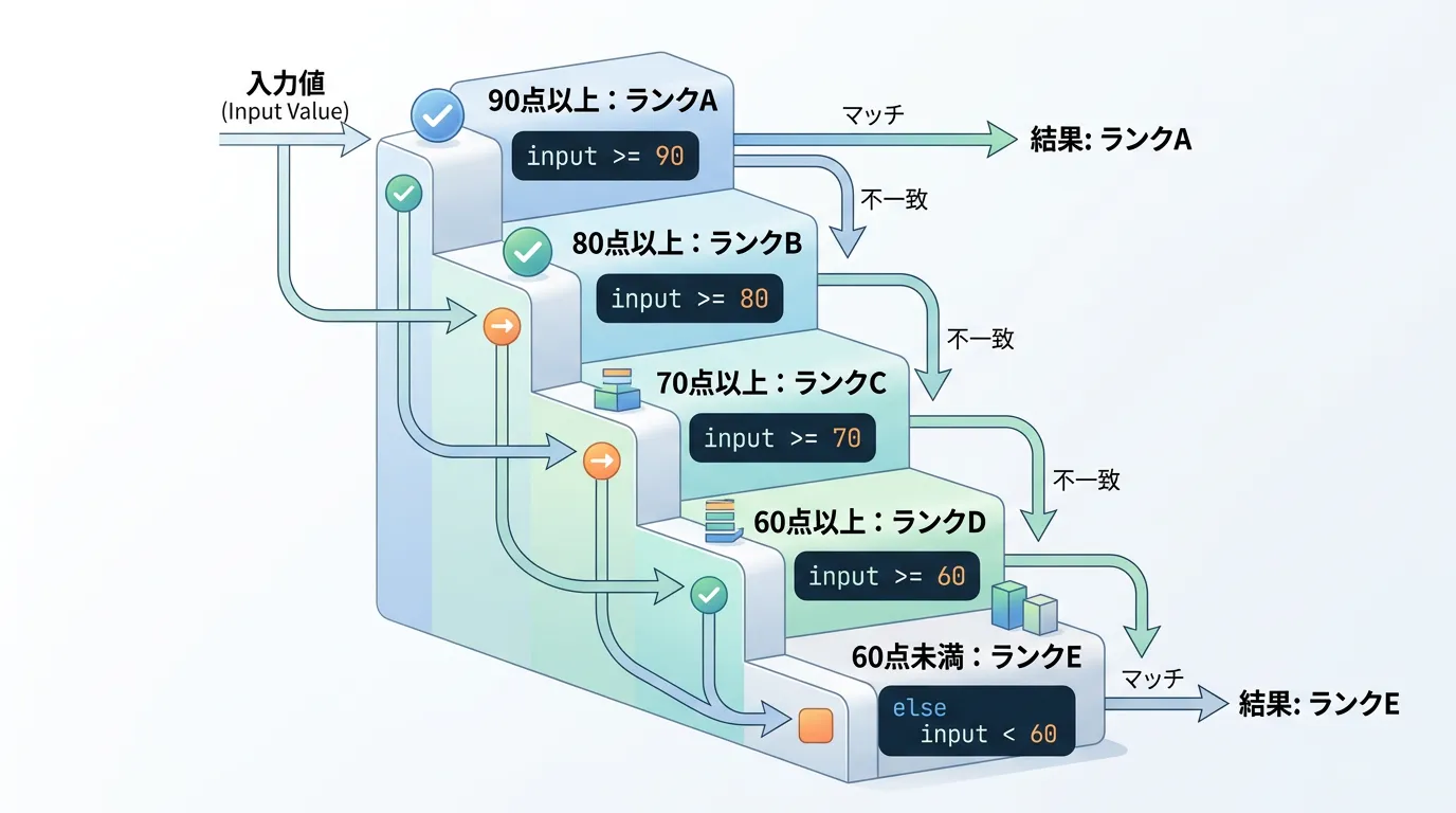 これにより、従来の複雑なif条件をすっきりと整理できます。