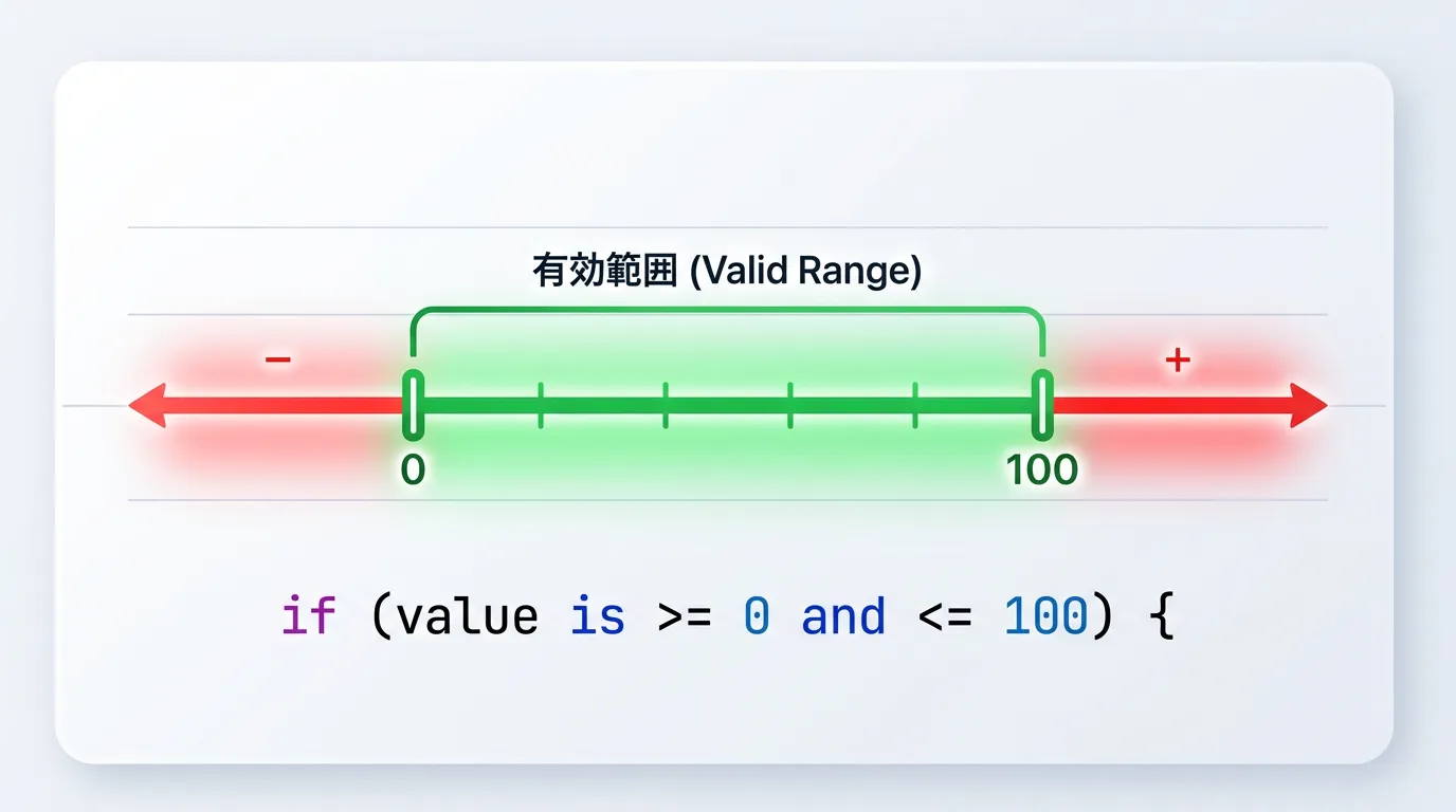 C#の関係パターンを用いた範囲指定は、従来の冗長な比較演算の繰り返しを排除し、可読性と保守性の高いコードを実現するための必須テクニックです。