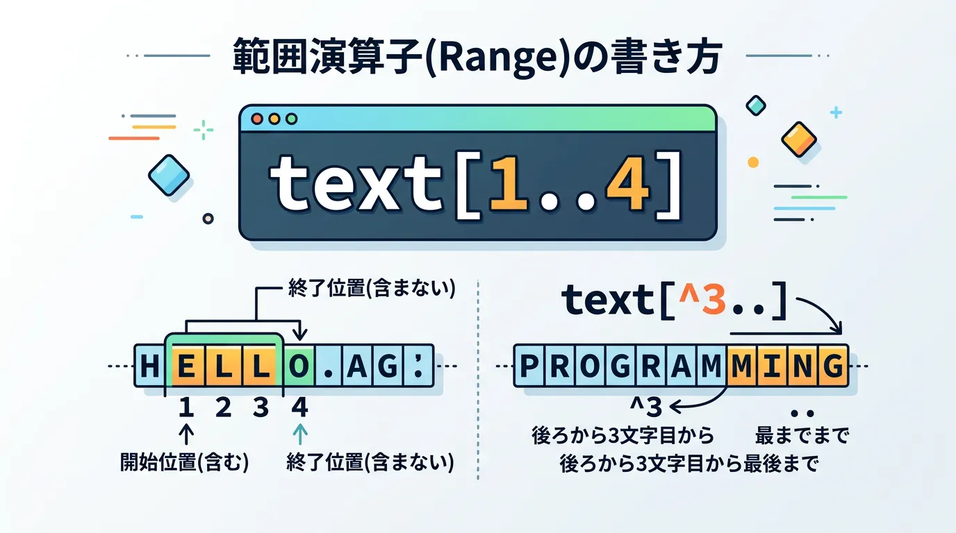 この記法を使うと、特に「末尾から数文字」といった指定が非常に簡潔になります。