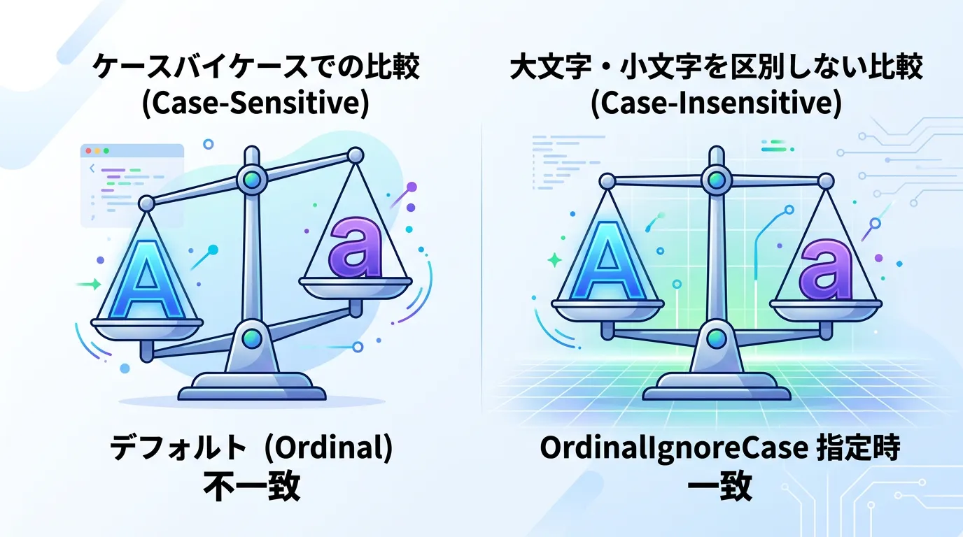 C#では、比較ルールを明示的に指定することが推奨されます。