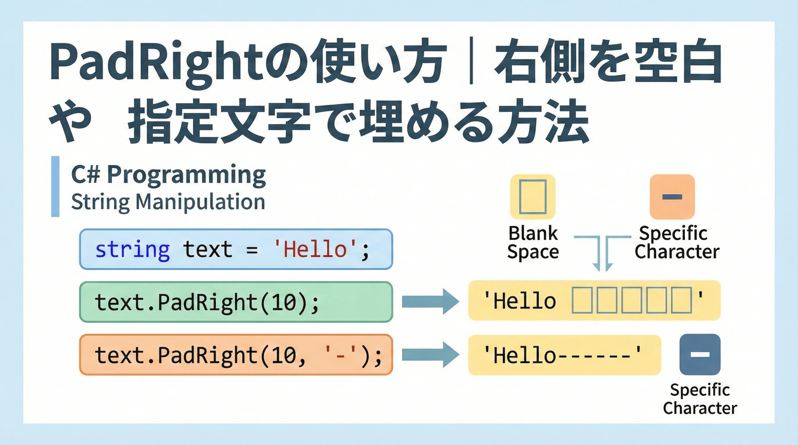 本記事では、PadRightの基本的な使い方から、実戦で役立つ応用テクニックまで詳しく解説します。