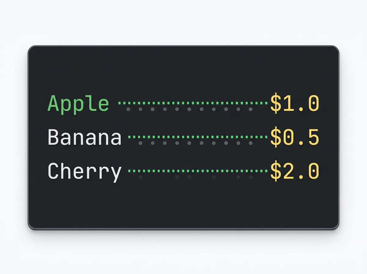 結果として、コロン(:)の位置が垂直に綺麗に揃い、非常に読みやすいリストになります。