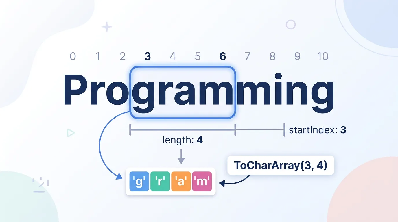 ToCharArrayには、文字列全体ではなく特定の部分だけを配列として取り出すオーバーロードが存在します。