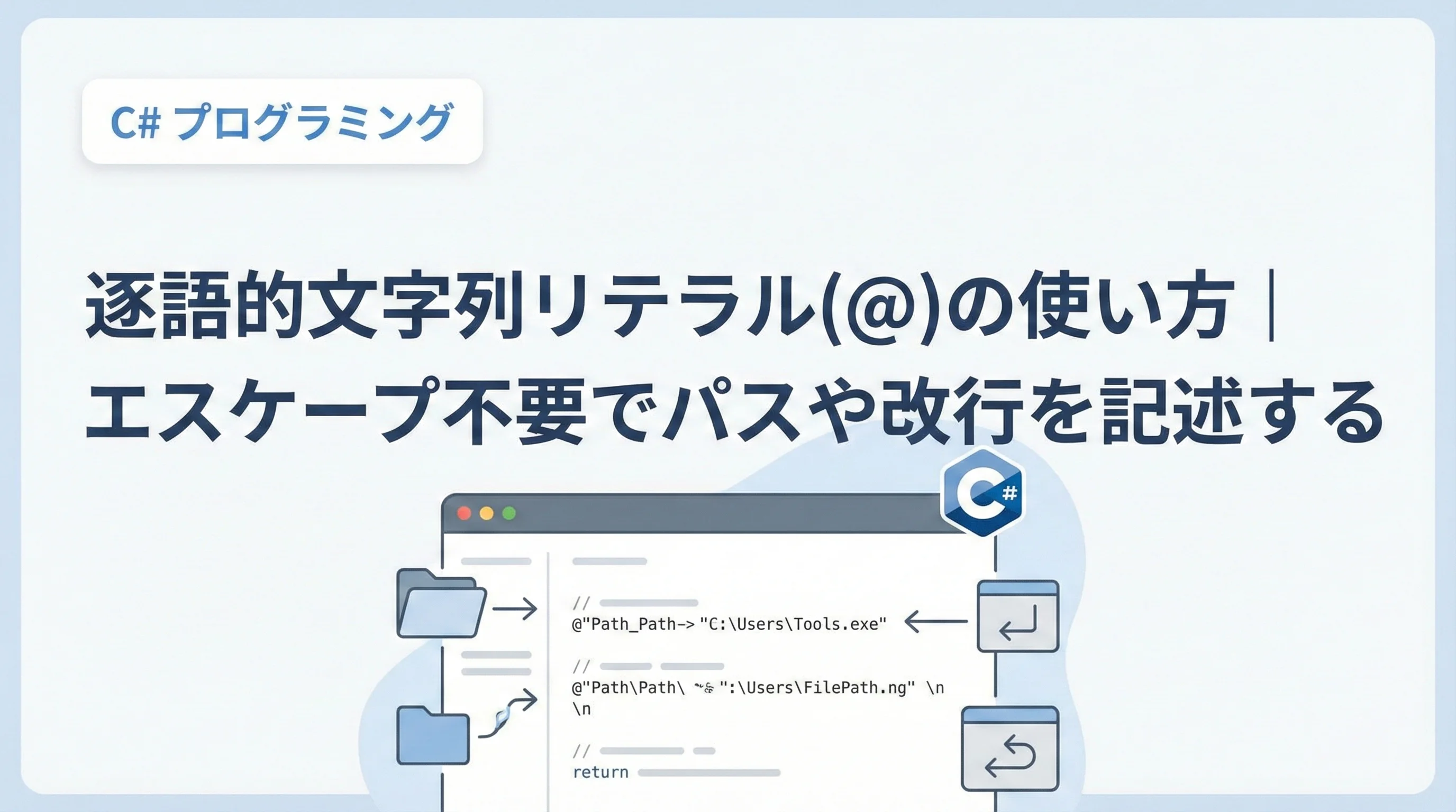 【C#】逐語的文字列リテラル(@)の使い方|エスケープ不要でパスや改行を記述する