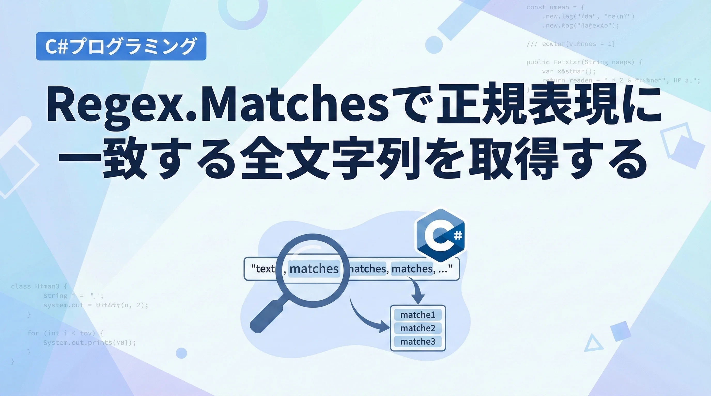 C#のRegex.Matchesは、複雑なテキスト処理をわずか数行のコードに凝縮できる非常に強力なメソッドです。
