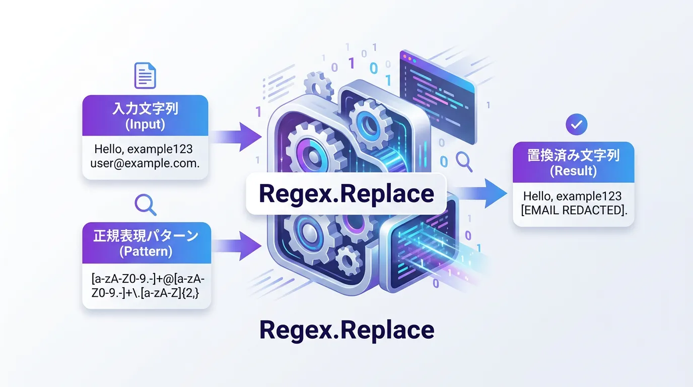 Regex.Replace は、テキスト内から指定したパターンに一致する箇所を探し出し、別の文字列へ効率的に置き換えるための強力なツールです。