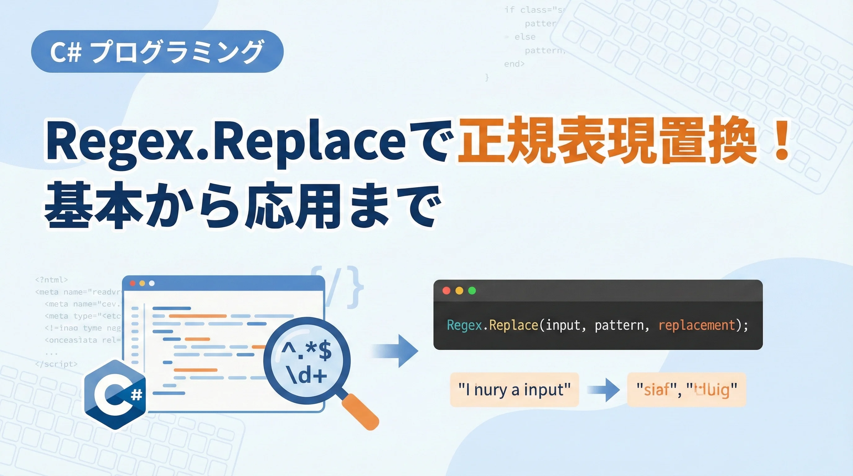 Regex.Replace は、C# における文字列操作の中でも非常に柔軟かつ強力なメソッドです。