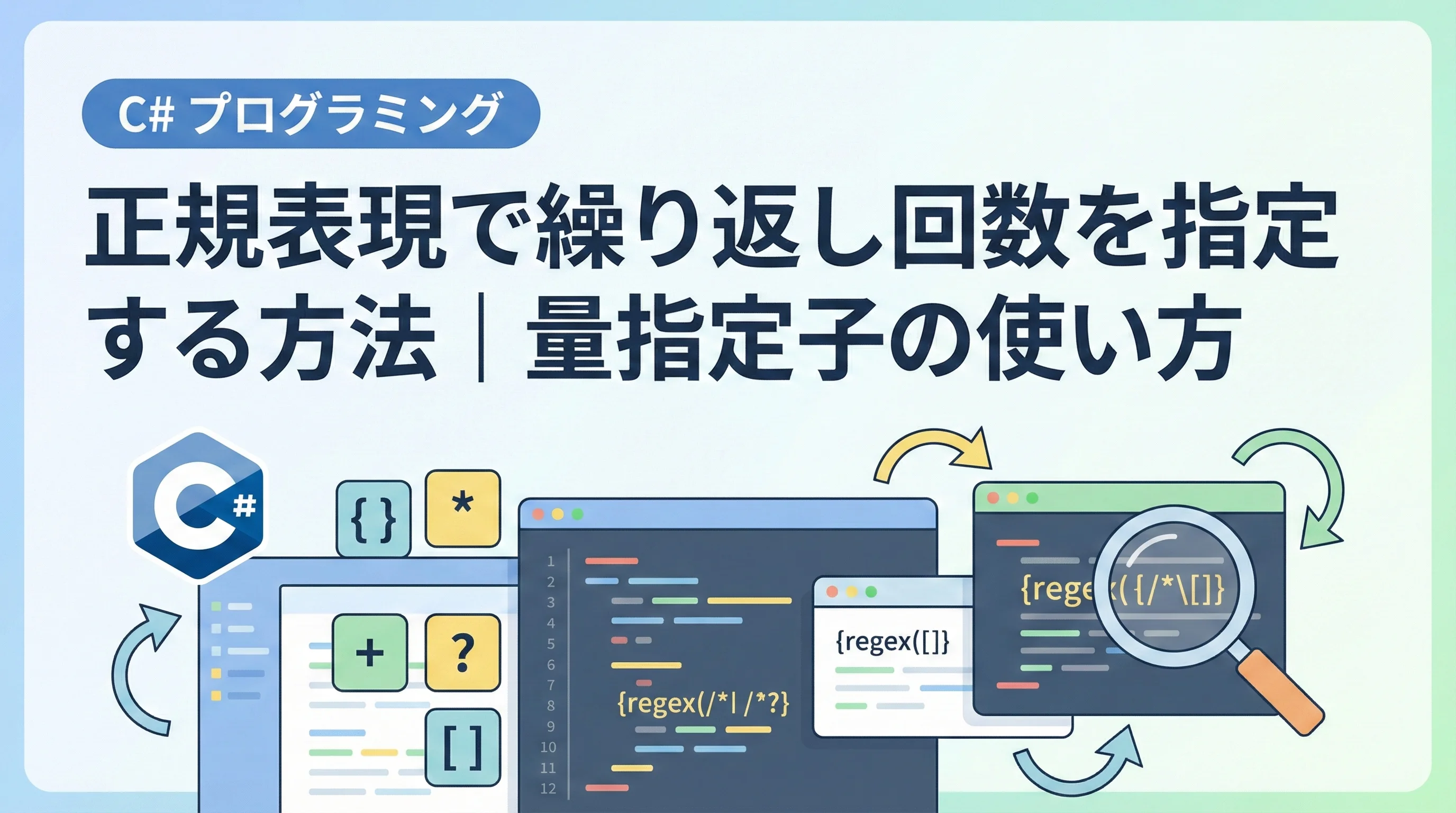 本記事では、C#のSystem.Text.RegularExpressions名前空間を利用して、正規表現で繰り返し回数を指定するさまざまな方法を、基礎から最新の最適化手法まで詳しく解説します。