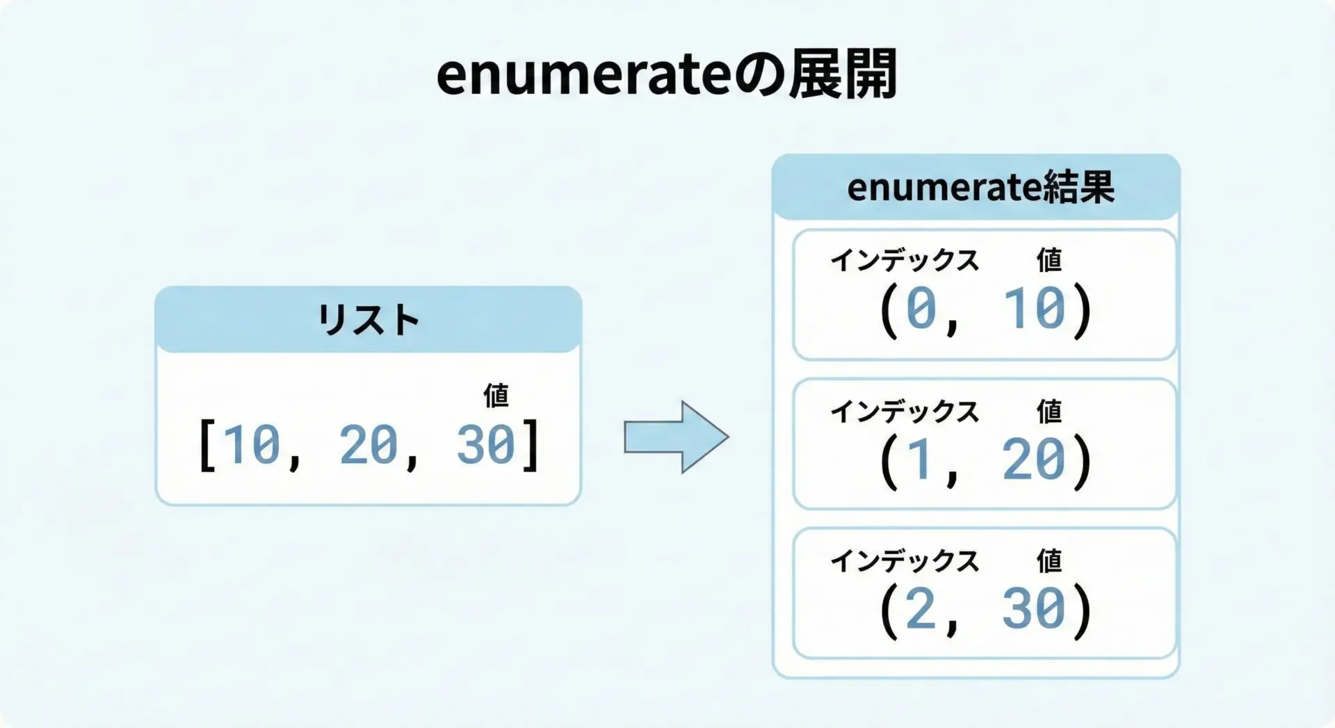 まずは、Pythonに標準で用意されている機能を使って、シンプルなリストからインデックスを取得する基本を押さえます。