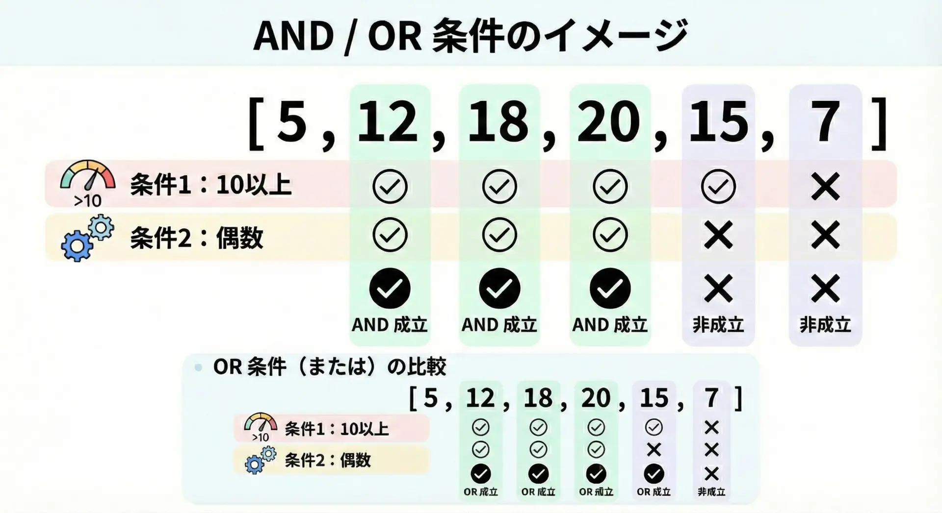 このように、「値」「キー」「属性」など、対象に応じて条件部だけを書き換えれば同じパターンを使い回せます。