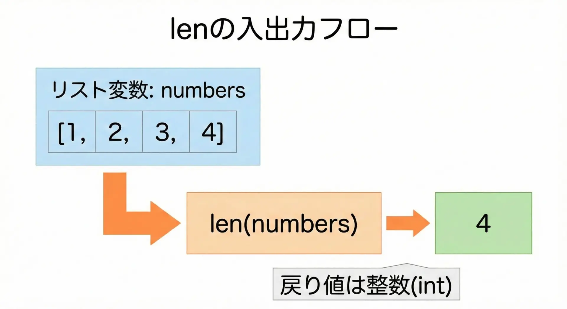 また、リストそのものを変更するのではなく、長さの情報だけを別の値として返す点が重要です。