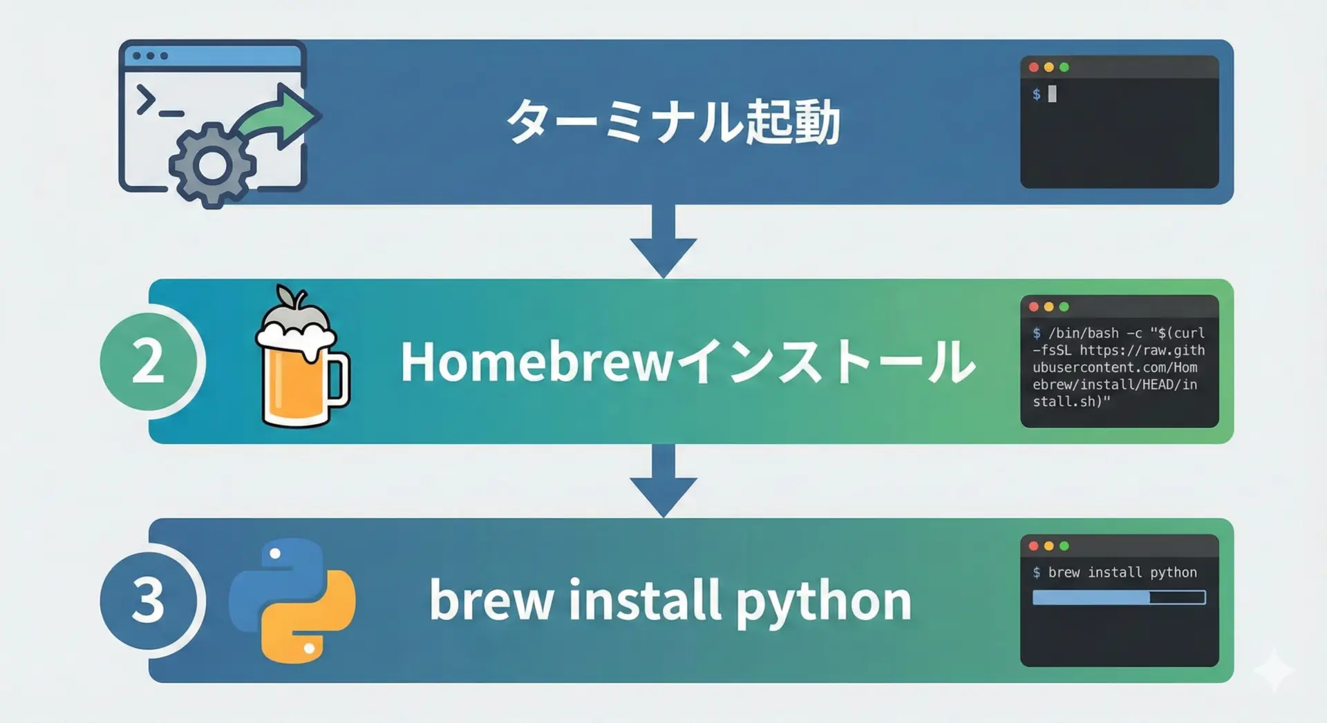 Windowsでは公式インストーラーでAdd Python to PATHに注意し、Macでは標準Pythonには触れずHomebrewや公式インストーラーからPython 3を追加するのが基本です。
