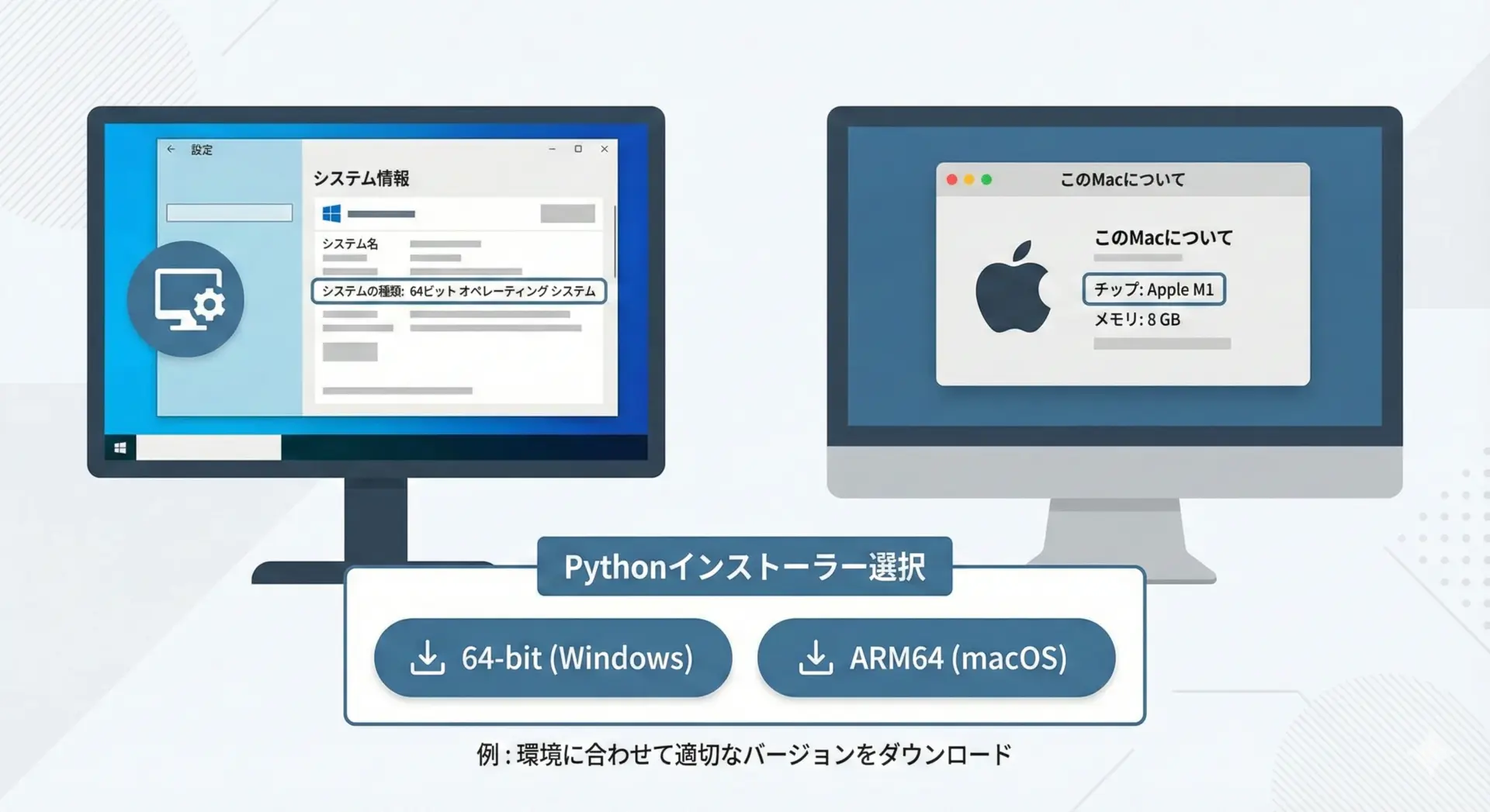 Pythonをダウンロードする際には、自分のOSが32bit版か64bit版かを確認して、その種類に合ったインストーラーを選ぶ必要があります。