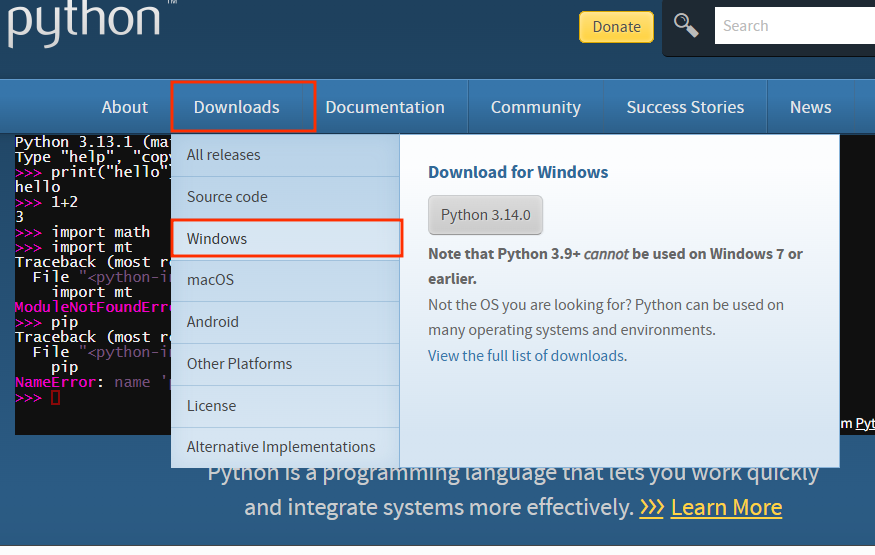 ブラウザでhttps://www.python.org/にアクセスします。