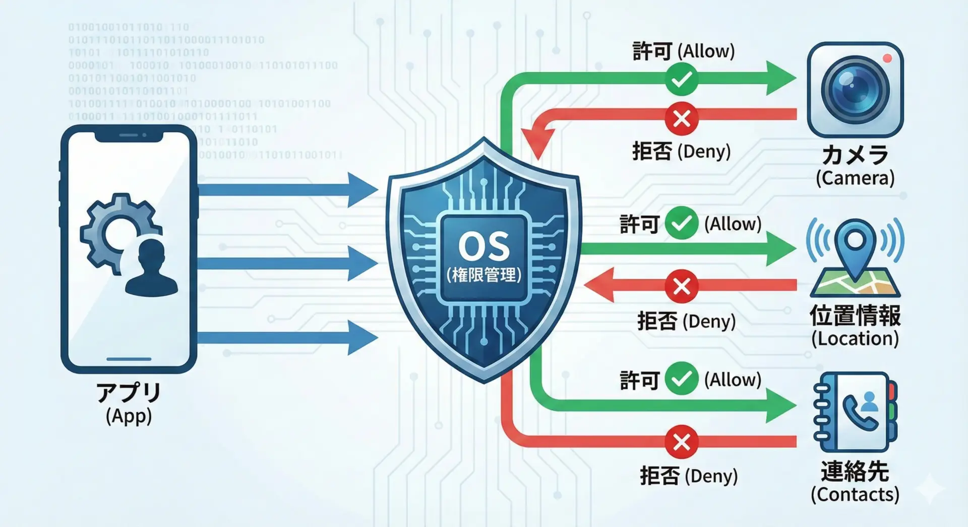 - アプリごとに「この機能は使ってよい」「これは禁止」という権限を管理する