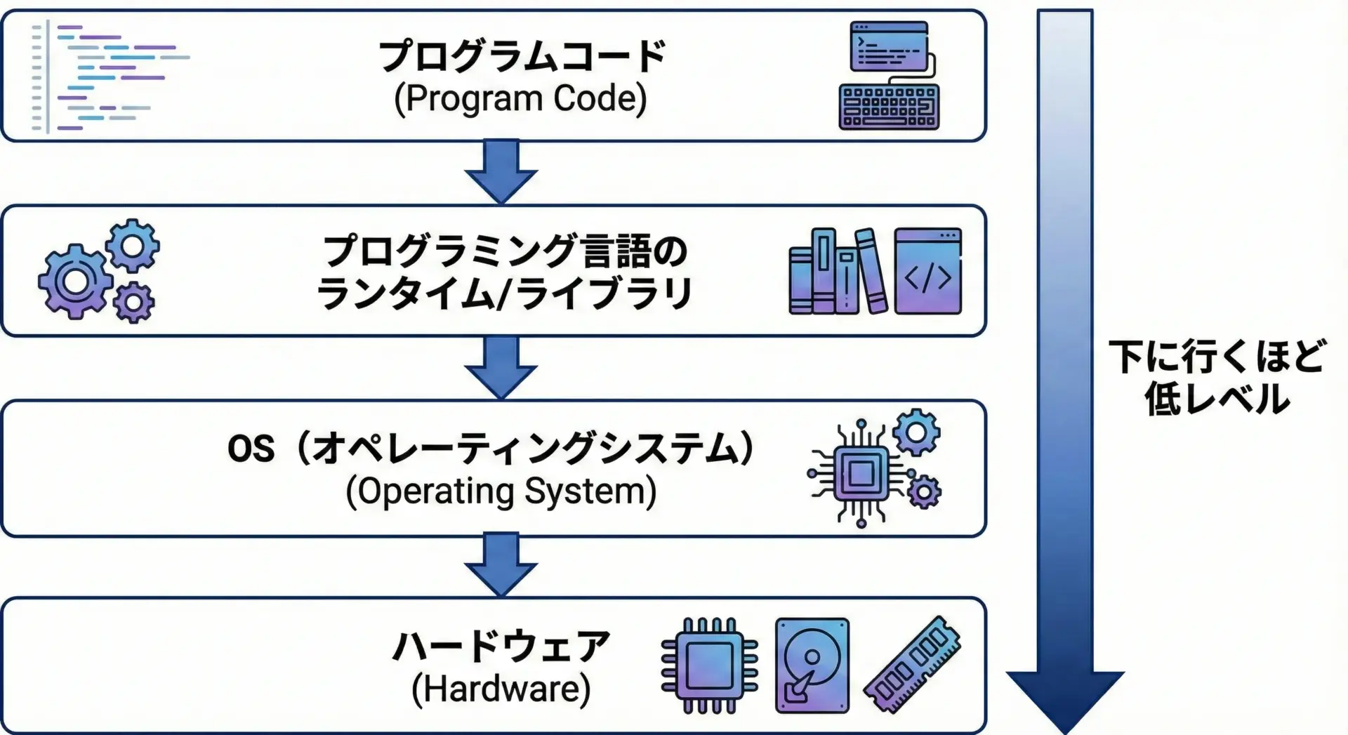 これからプログラミングやコンピュータの仕組みを学ぶときは、日々の操作の裏でOSが何をしているかを意識してみてください。