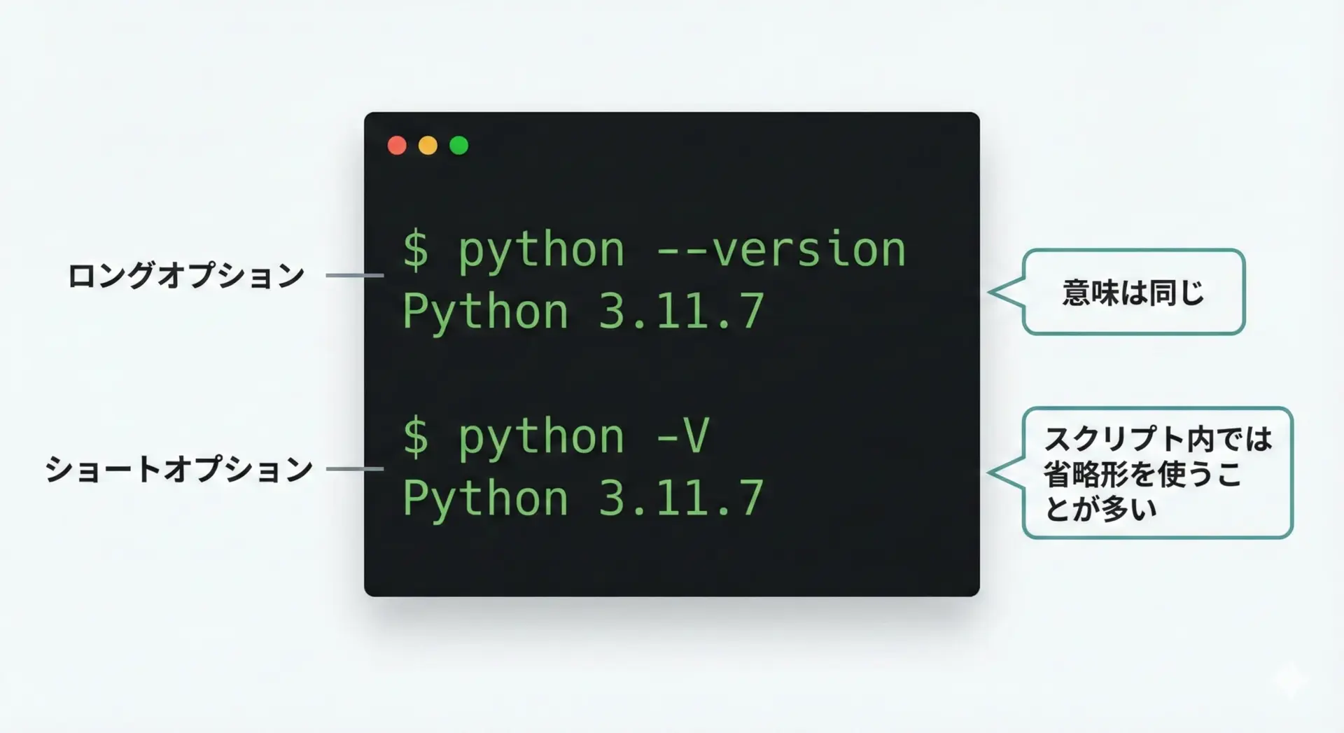 python –versionとpython -Vの違いと使い分け