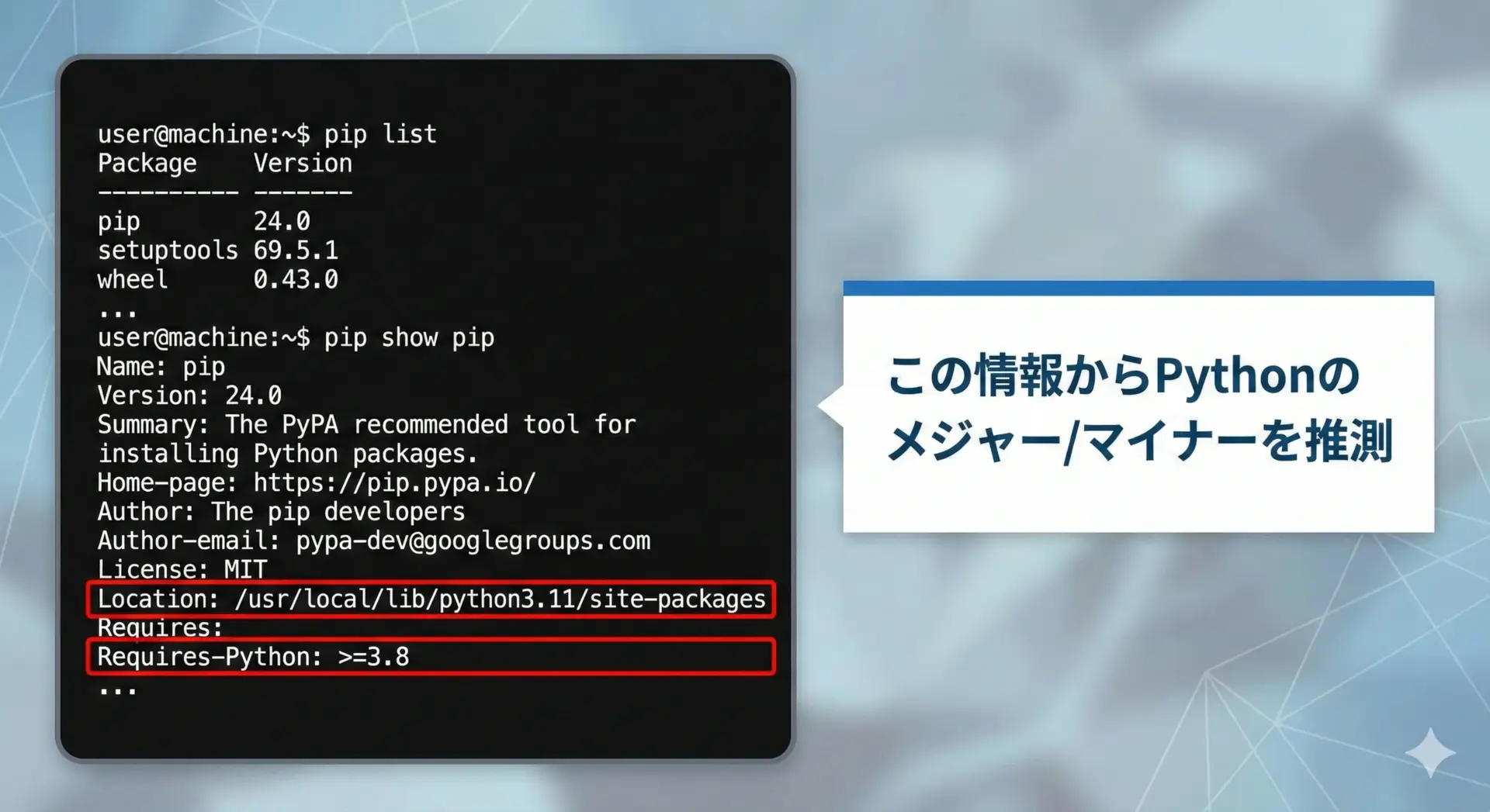 ここではpython version行が重要です。