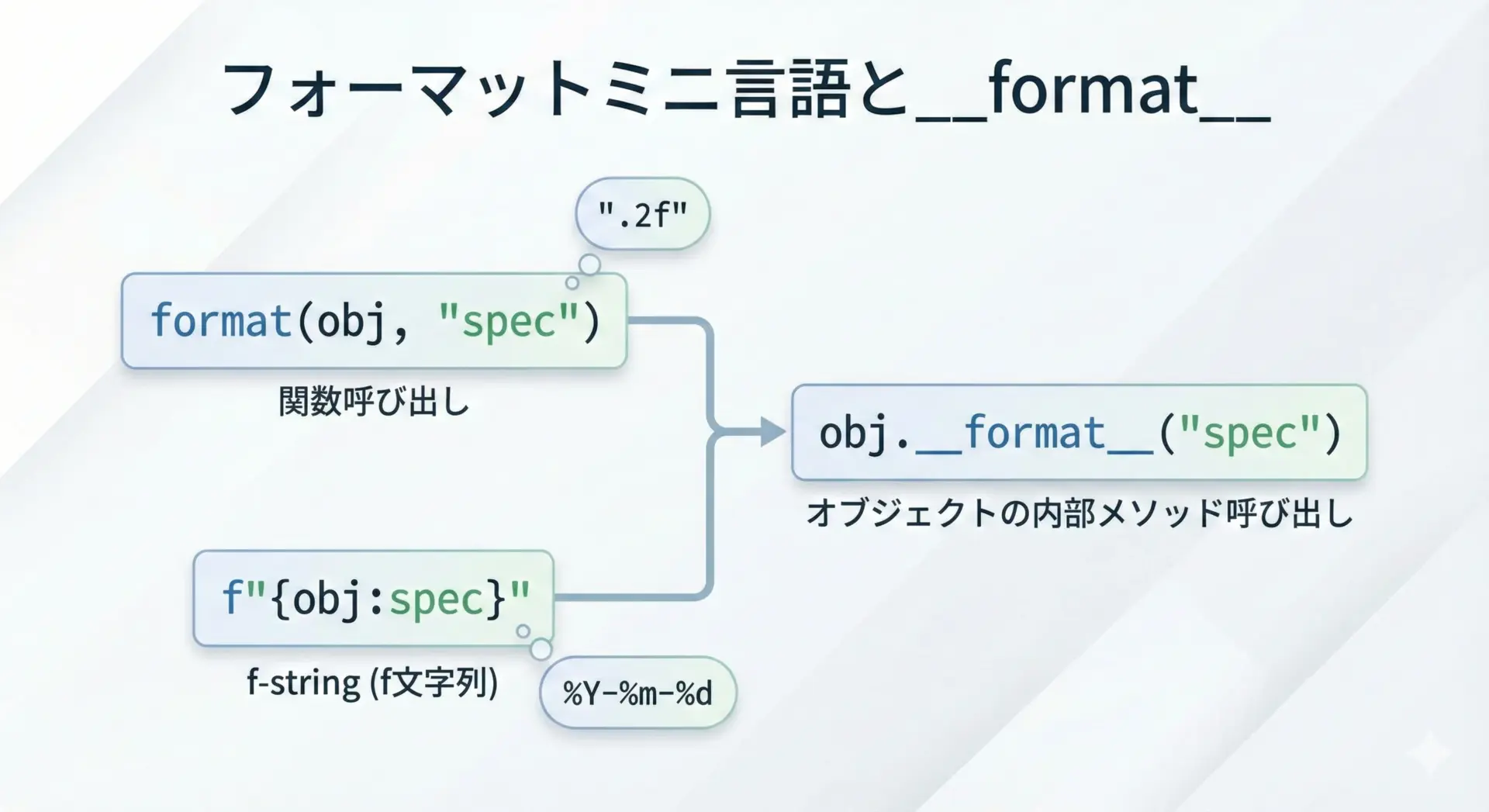 __format__(self, format_spec)format(obj, spec)f"{obj:spec}"のときに呼ばれます。