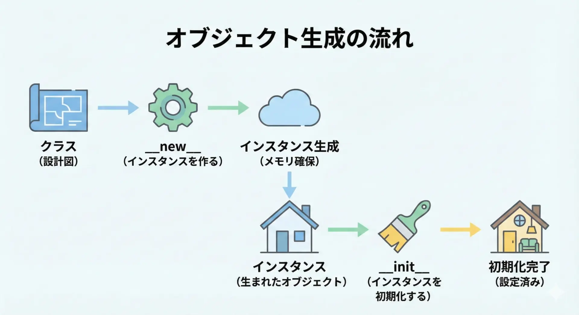 __new____init__は、オブジェクト生成時に使われるペアです。