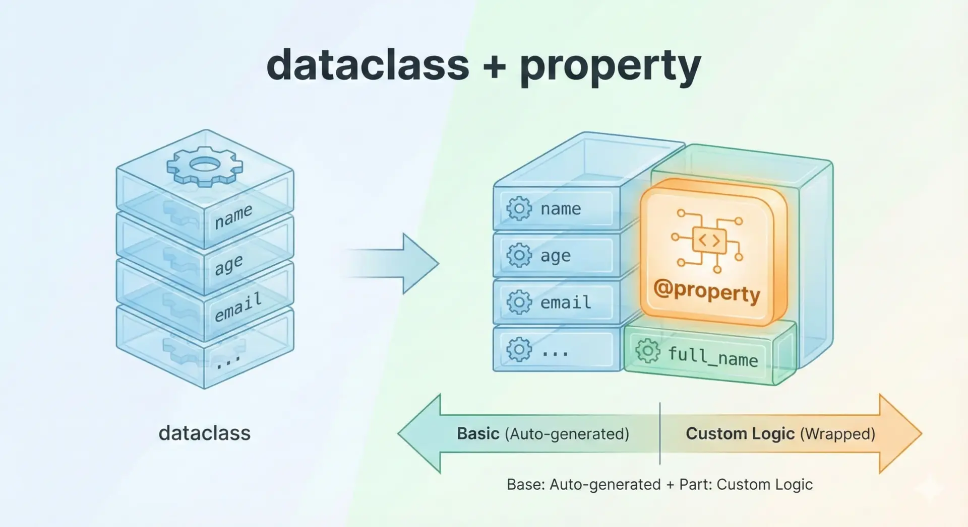 このように、「大部分はdataclassでシンプルに」「一部の重要な属性だけpropertyで制御」という組み合わせは、現代的なPythonコードで非常によく見られるパターンです。