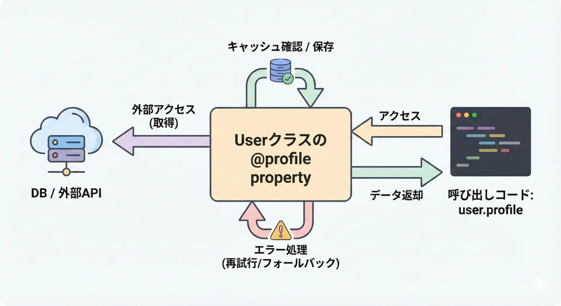 外部APIやDBアクセスを隠すgetter設計