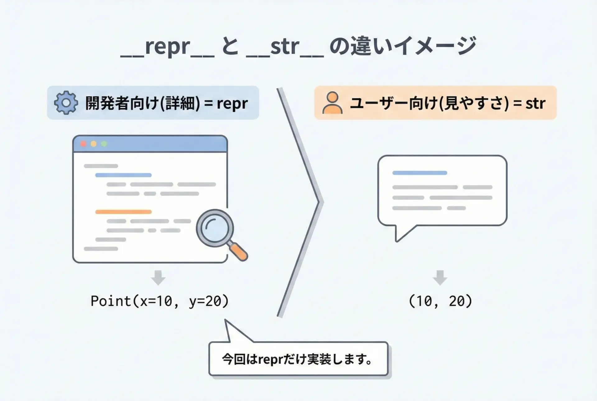 低レベルなメモリ管理から始めるのではなく、「インターフェース設計」と「特殊メソッドの役割」に焦点を当てる形です。