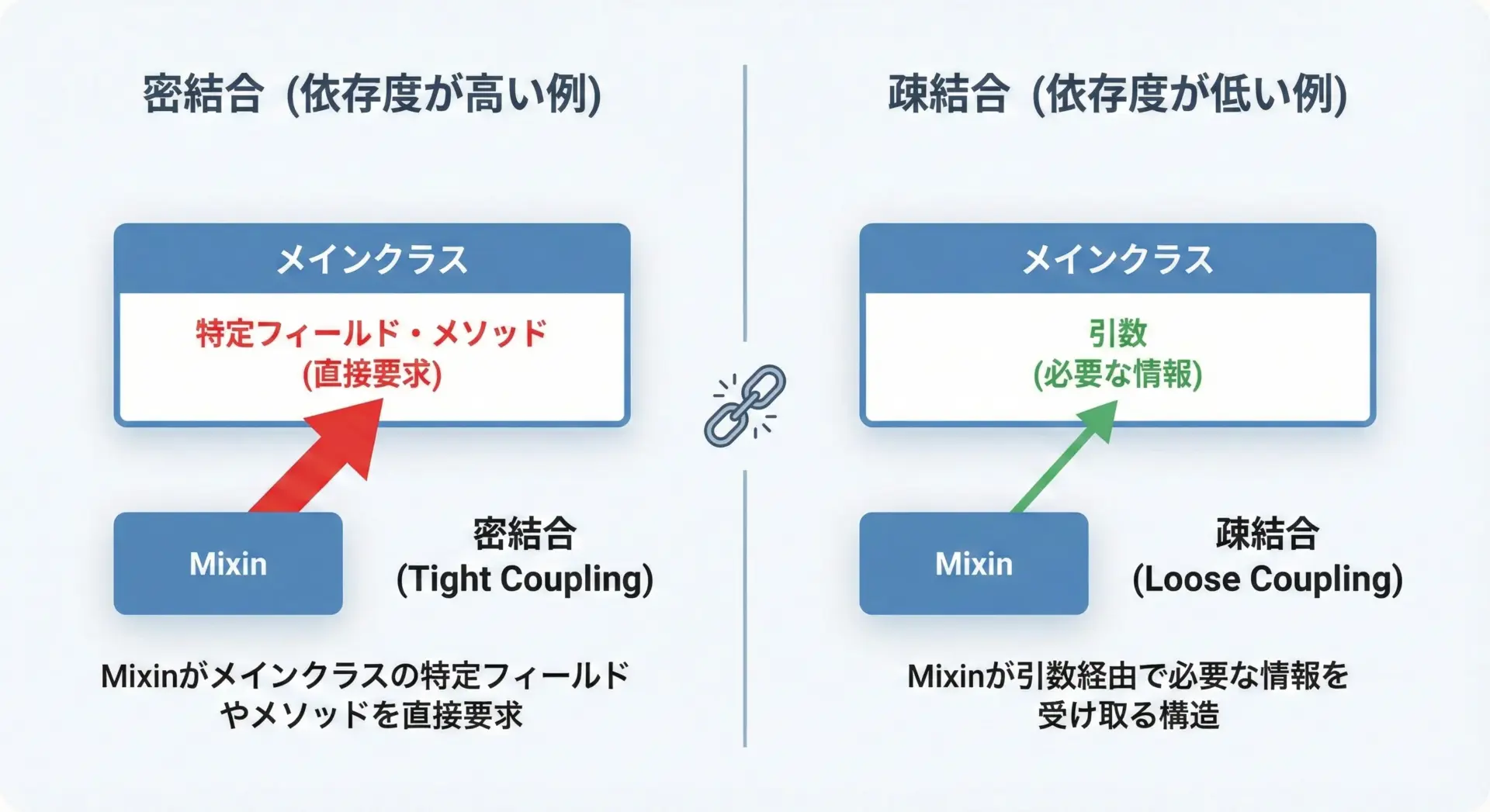 - ベストプラクティス4: Mixinでは他クラスの実装に強く依存しない