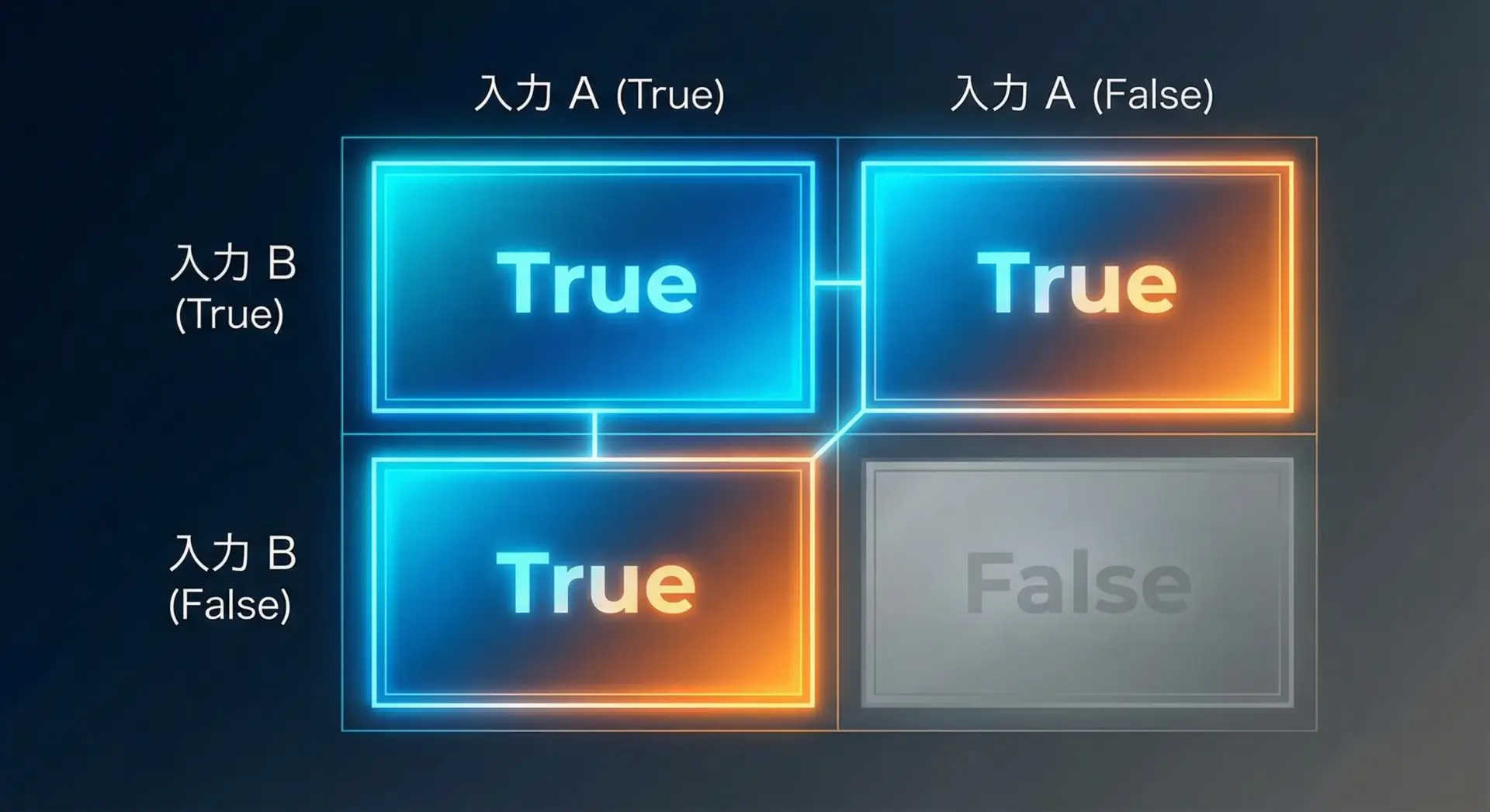 どちらか一方でもTrueならTrue、両方FalseのときだけFalse」