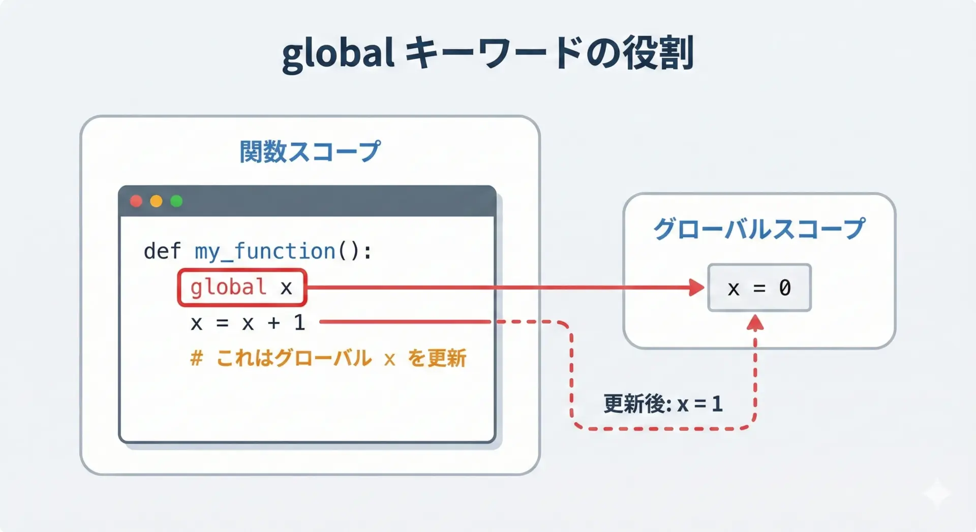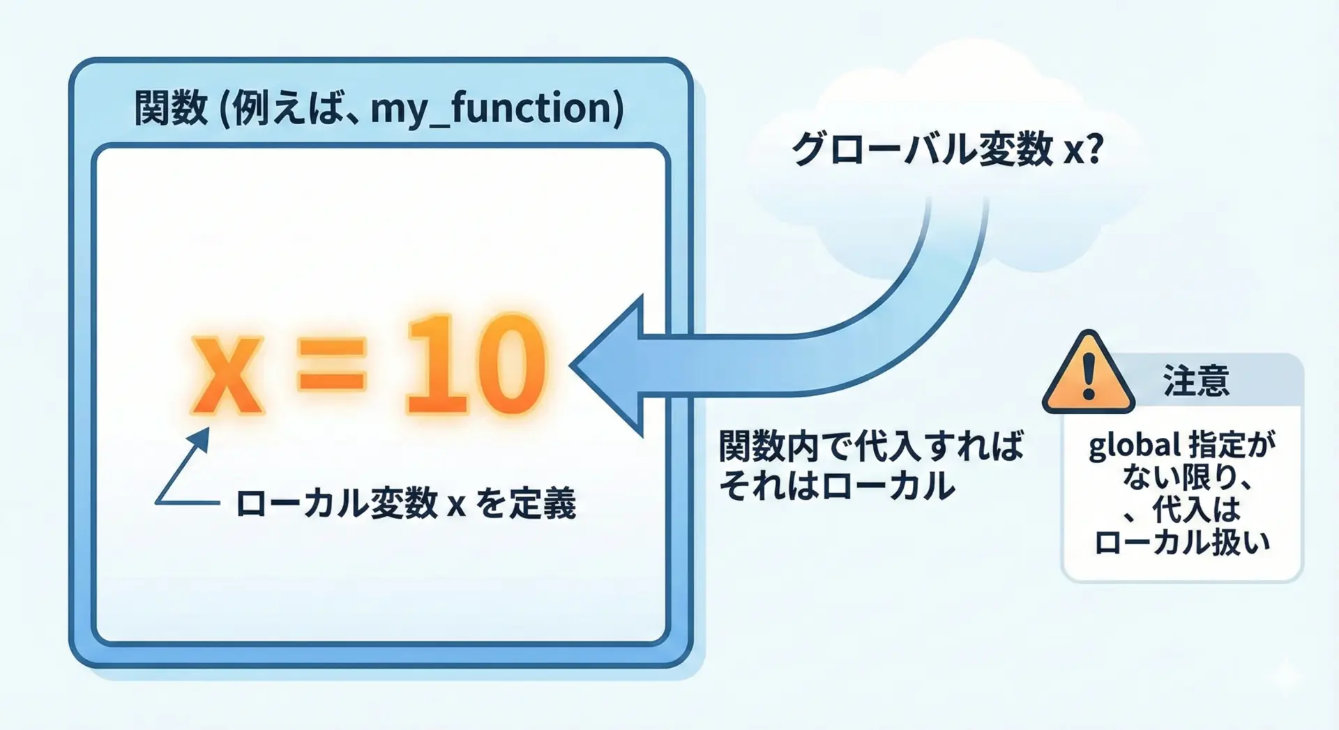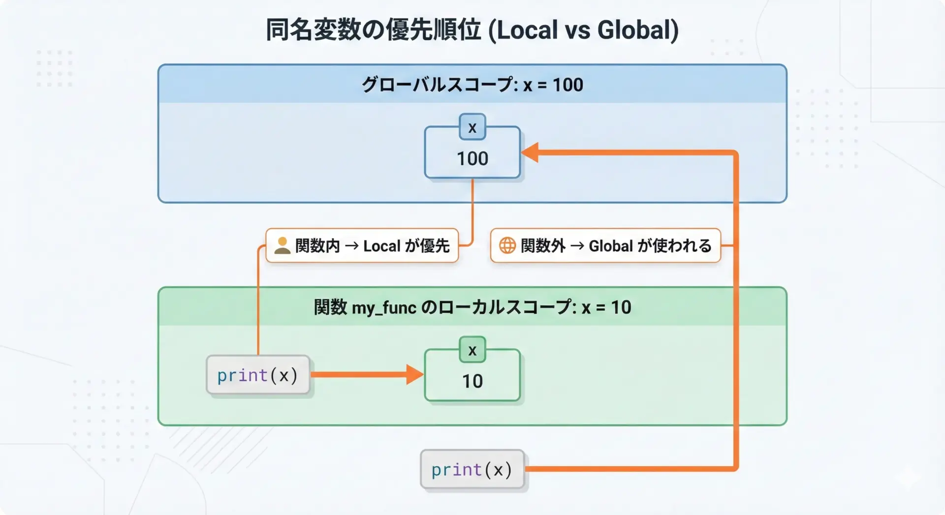 Pythonの変数スコープは、プログラムの読みやすさやバグの少なさに直結する大切な概念です。