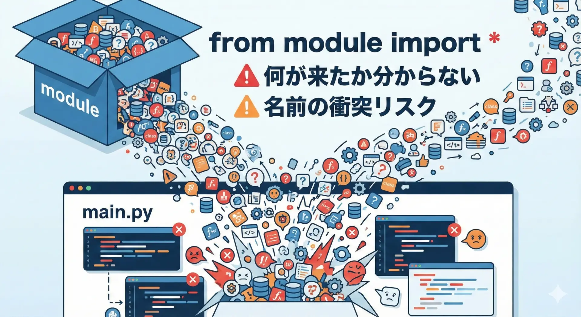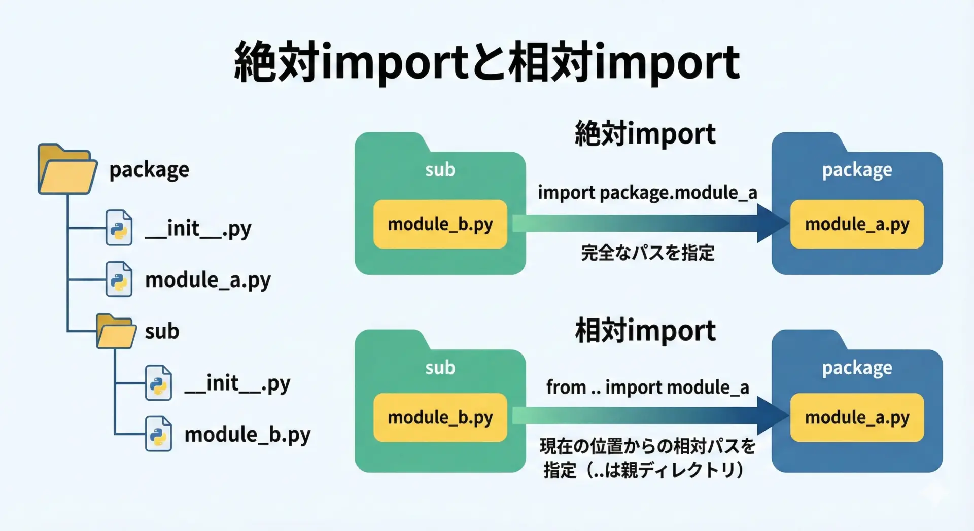本記事では、基本構文からalias、相対importと絶対import、よく使う実践的パターンやエラーの原因と対策までを体系的に整理しました。