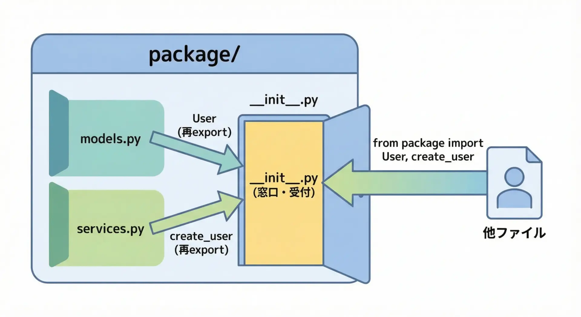 このファイルがあることで、Pythonはそのディレクトリをパッケージとして認識します。