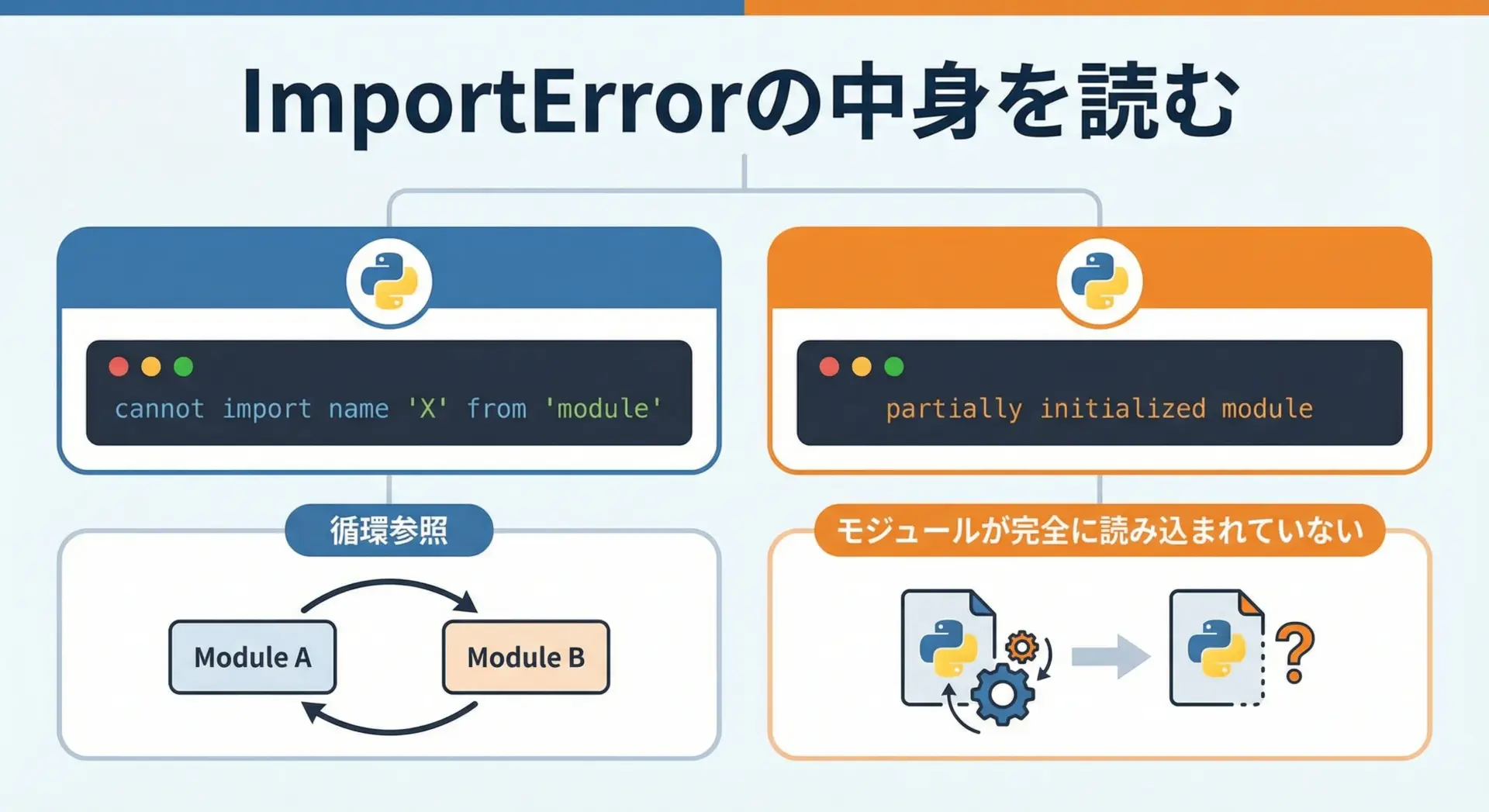ImportErrorの典型パターンとデバッグ方法