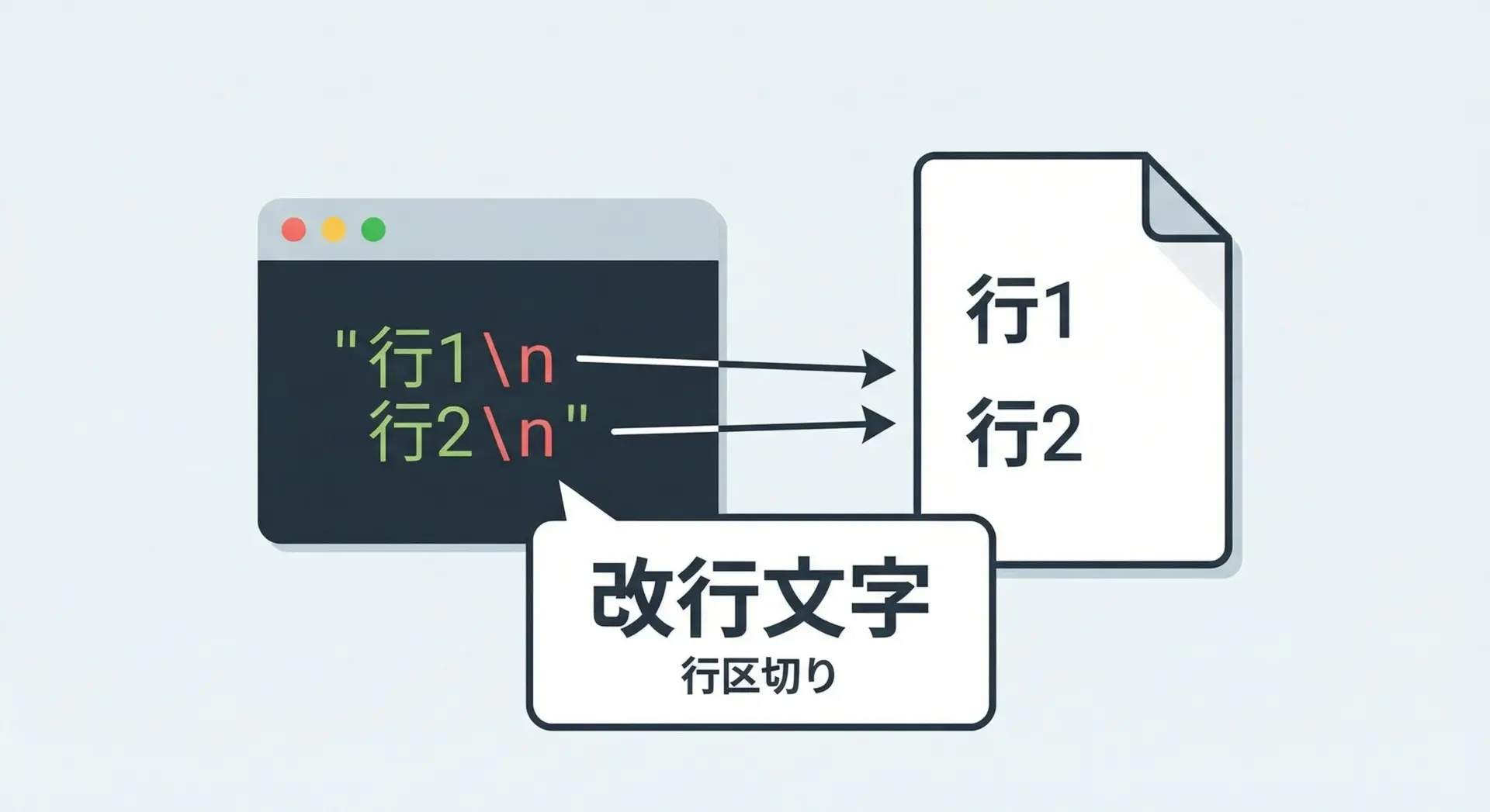 改行付きで書くには\nを使う