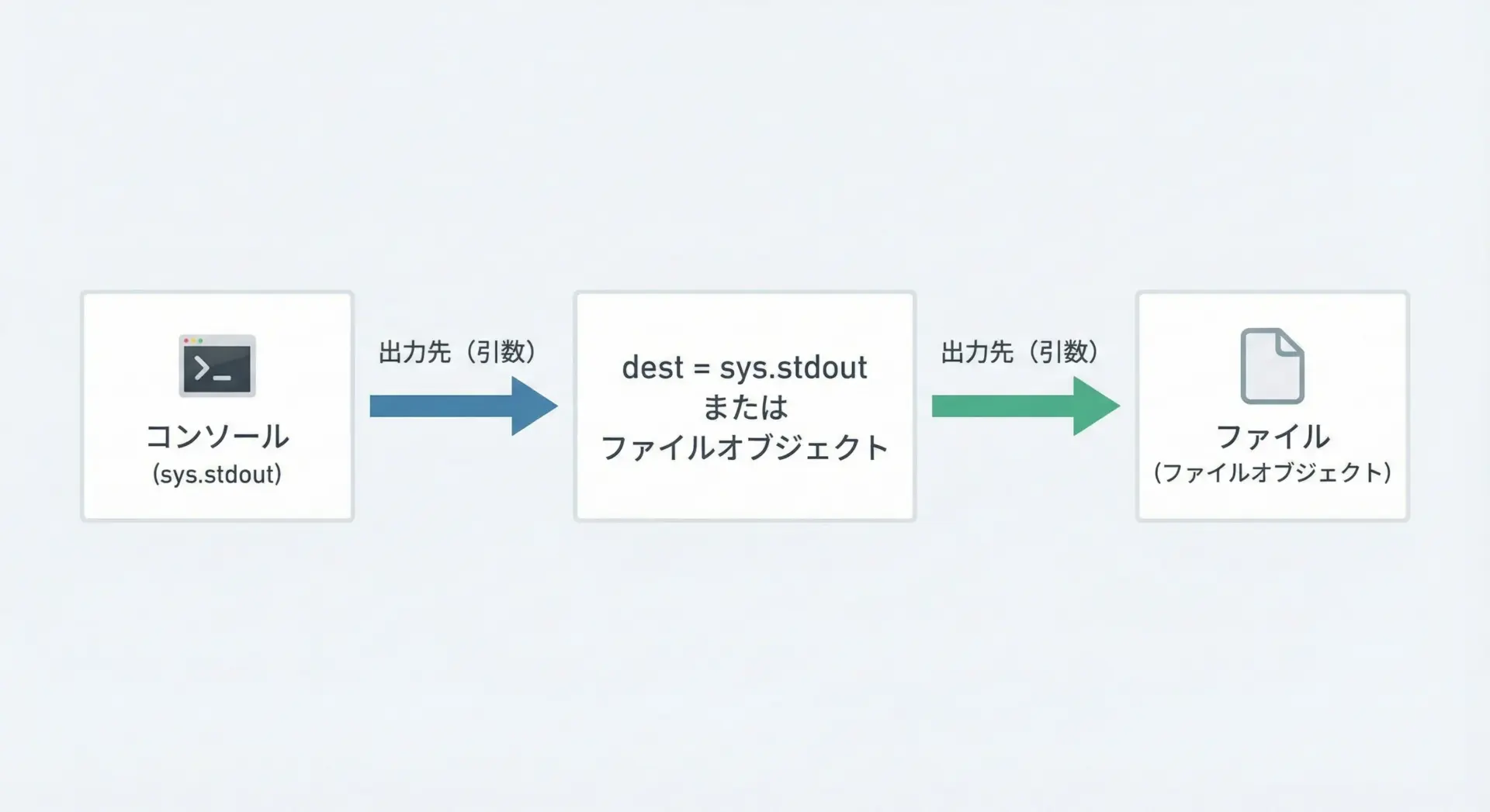 ファイルオブジェクトに対してwriteメソッドを呼び出すか、print関数にfile引数を渡して書き込みます。