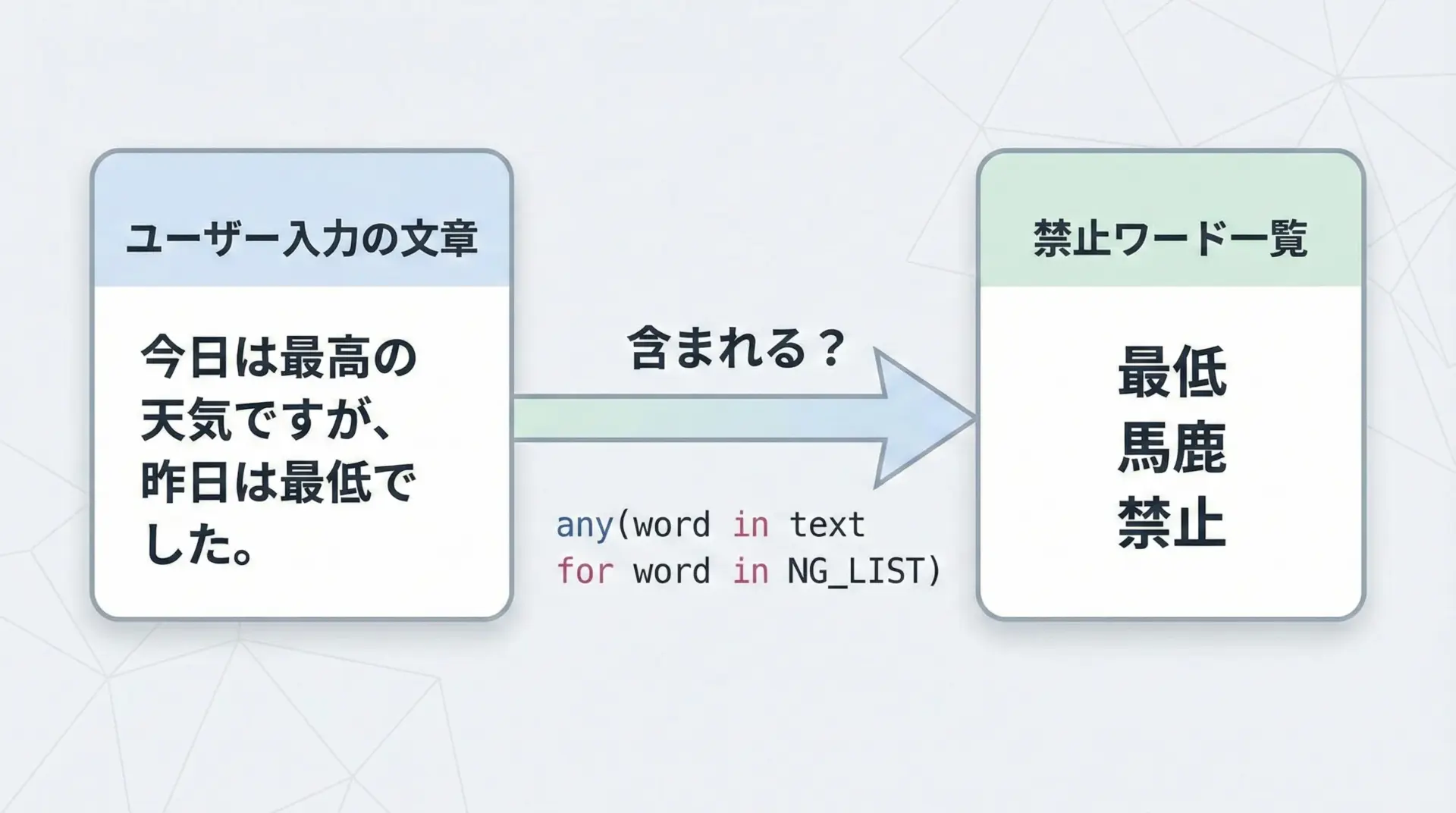any/allを使うと、複数のNG条件をまとめてすっきり書けるようになります。