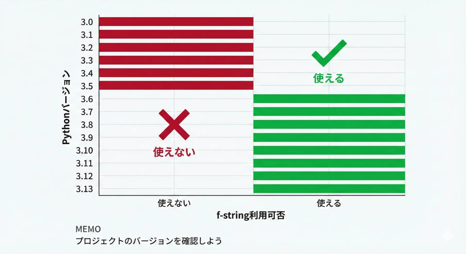 古いformatや%演算子を使わなくても、シンプルで読みやすいコードが書けます。