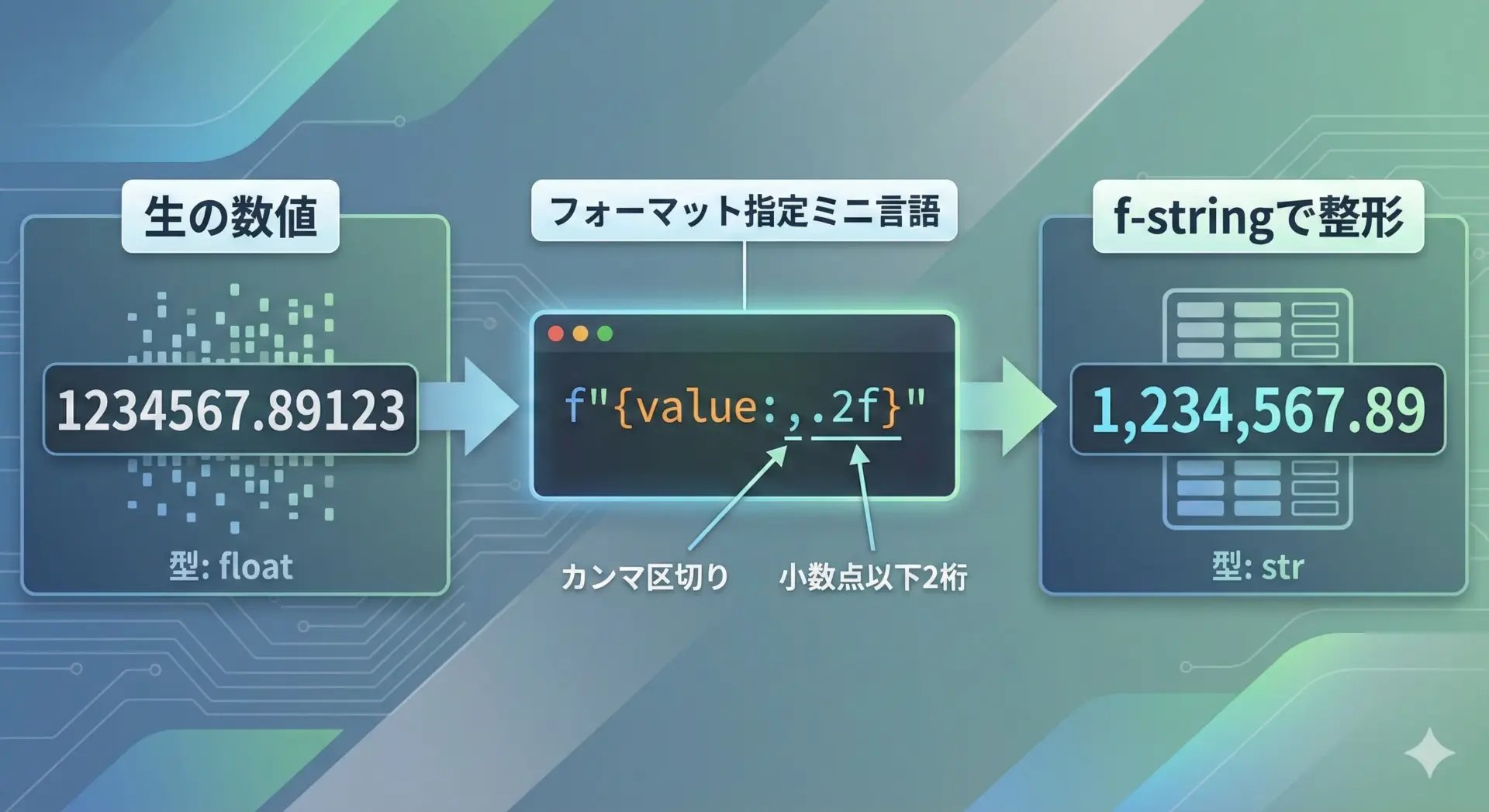 この記事では、f-stringの基本から、数値・日付・オブジェクトのフォーマット、注意点まで丁寧に解説します。
