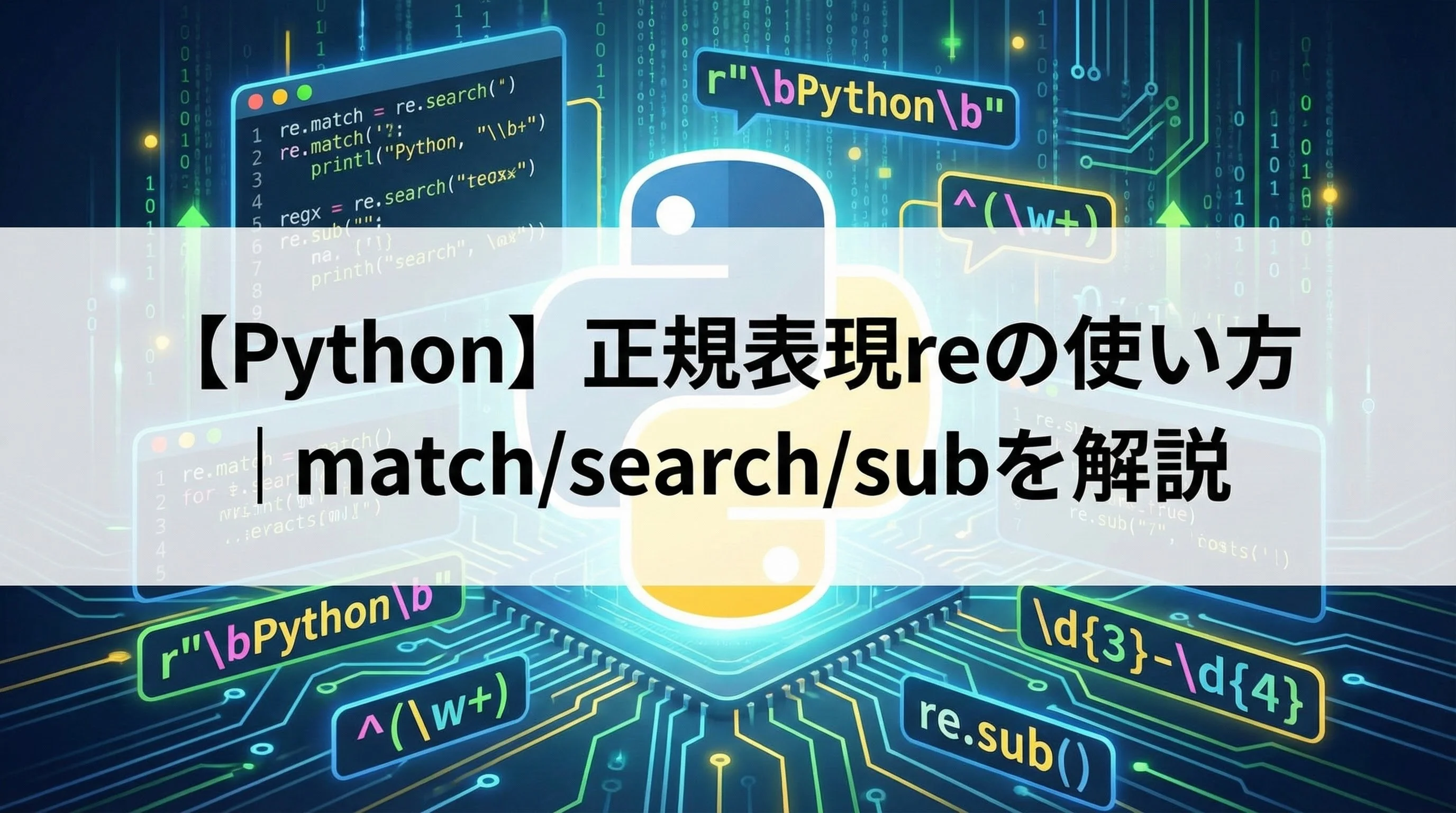 本記事では、Pythonのreモジュールを使ってパターンマッチングを行う方法を、match/search/subの3つの代表的な関数に絞って、図解とサンプルコードつきで丁寧に解説します。