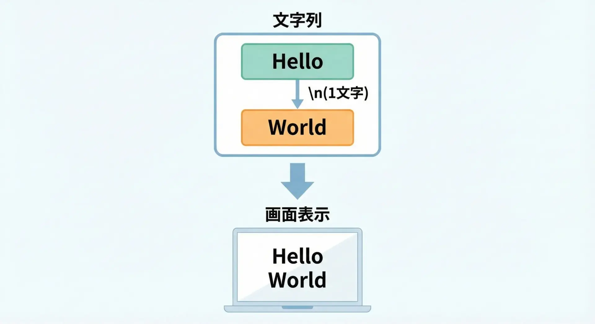 重要なのは、「2文字のバックスラッシュとn」ではなく、「1つの改行文字」として扱われる点です。