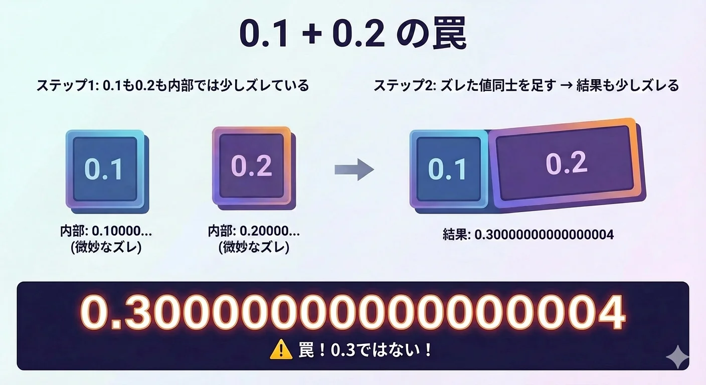 この記事では、「なぜ誤差が出るのか」「どう避ければよいか」を、図解とサンプルコードで丁寧に整理します。