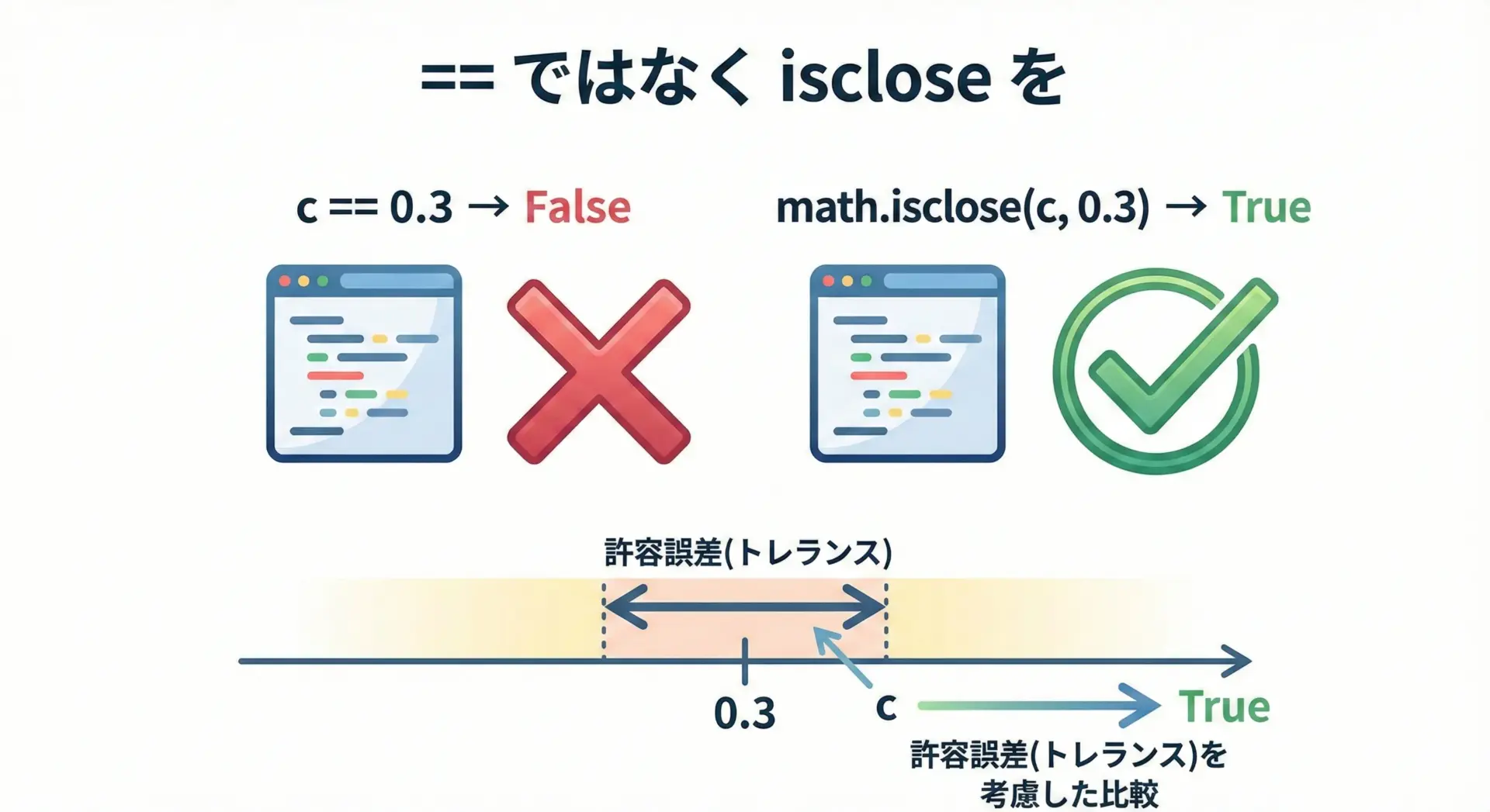比較演算(==)と誤差許容比較(isclose)の使い方