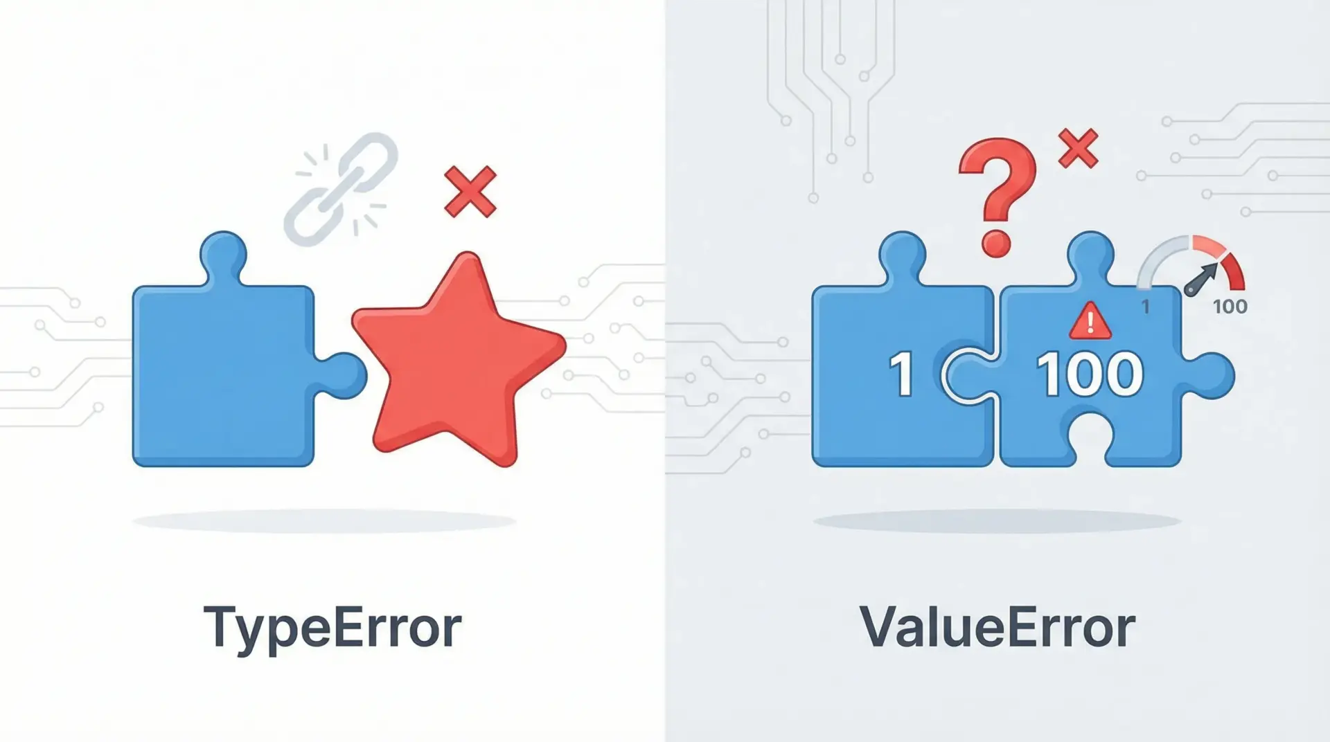 Pythonで初心者がよく遭遇する代表的な例外にTypeErrorとValueErrorがあります。