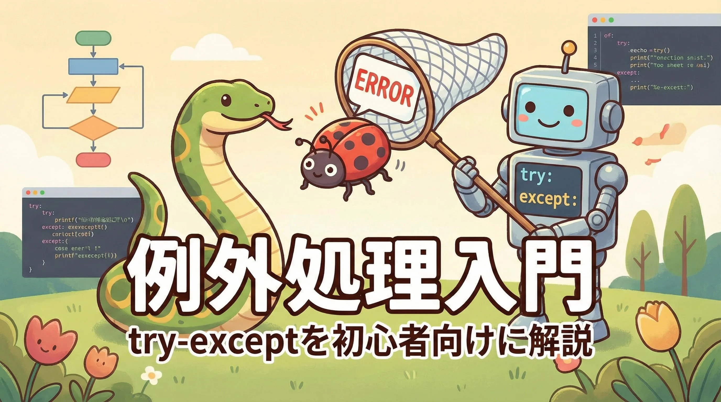 本記事では、Python初心者の方を対象に、try-exceptを中心とした例外処理の基本を、図解とサンプルコード付きで丁寧に解説していきます。
