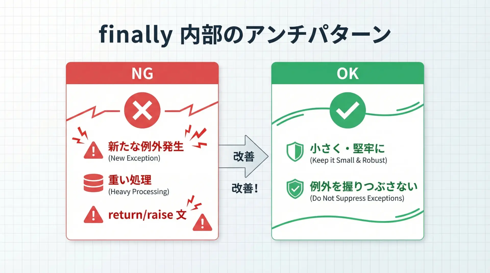 - finally に重い処理を入れすぎない