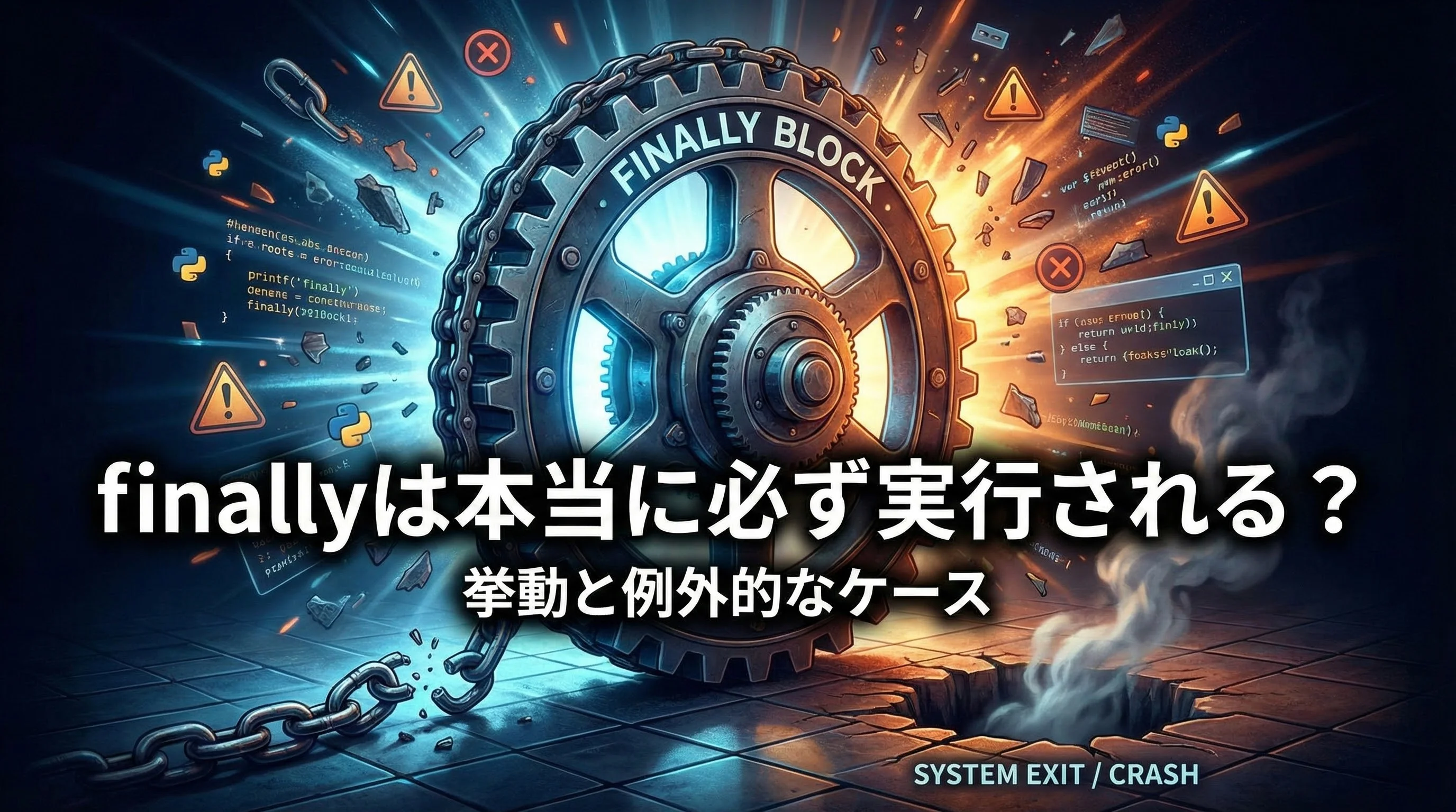 本記事では、まずtry/except/finallyの基本挙動を丁寧に整理し、そのうえで「なぜほぼ必ずなのか」「どんな場合に実行されないのか」を、サンプルコードや図解を交えながら詳しく解説します。