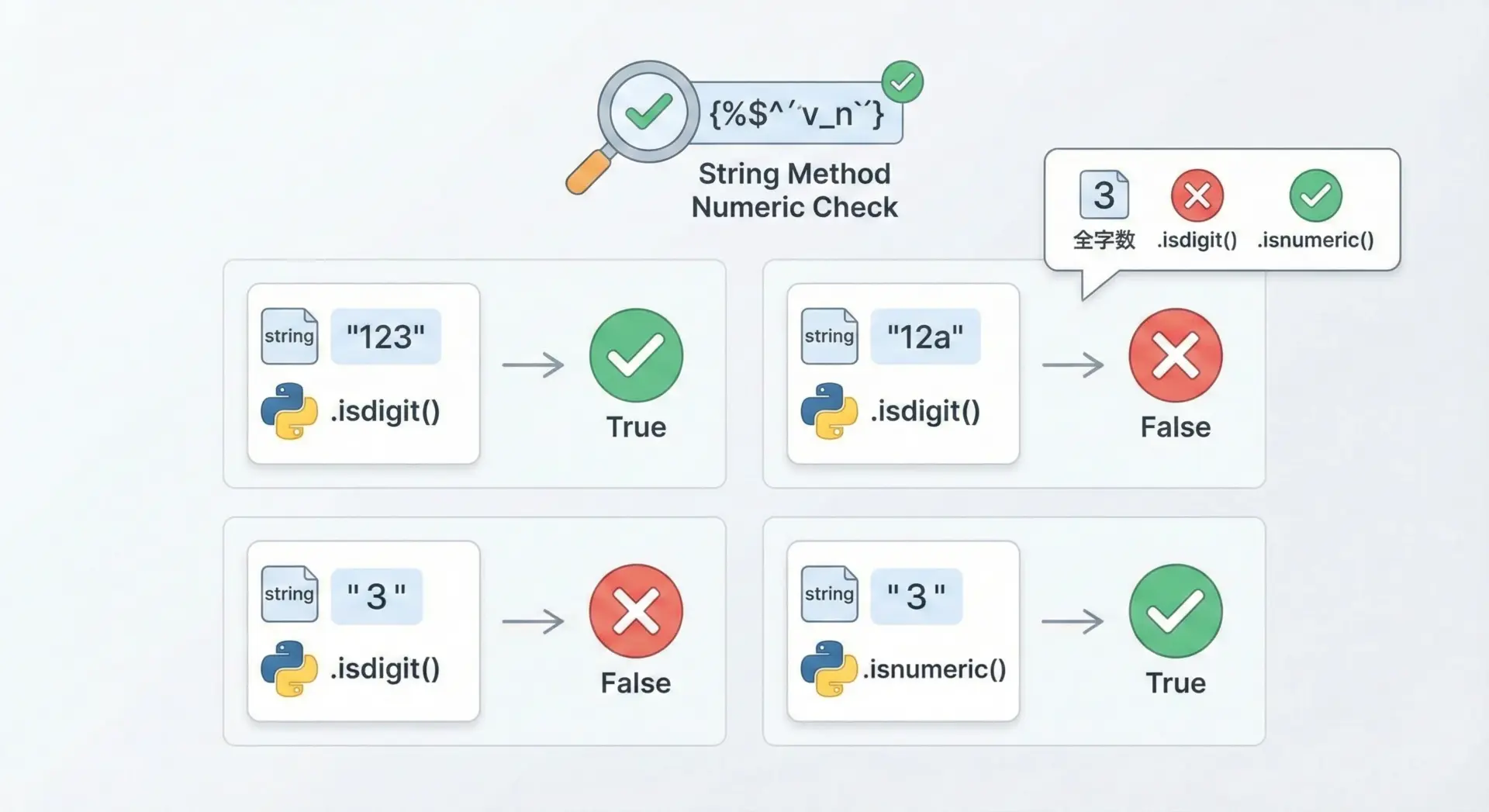 ユーザー入力やCSVファイルなど、外部から入るデータはまず文字列として受け取り、isdigit()などで妥当性を確認しつつ、必要な部分だけを数値へ変換します。