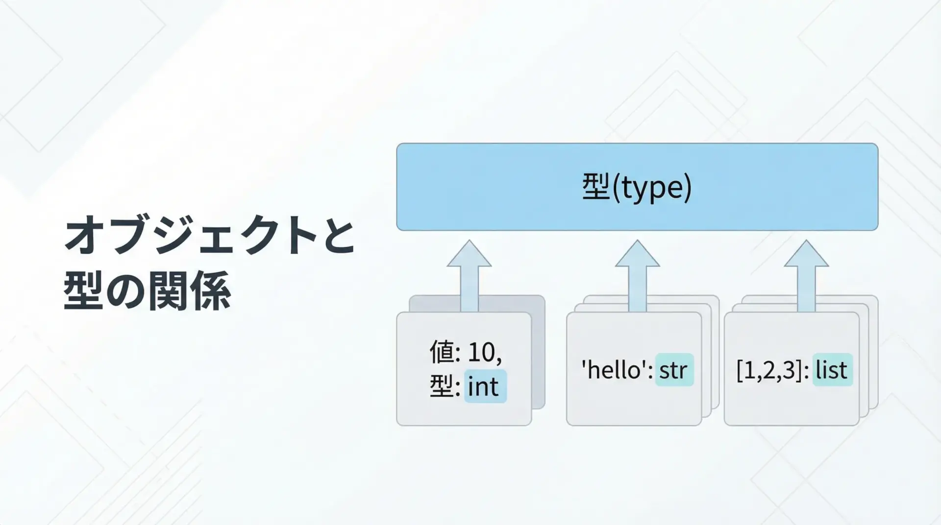 Pythonでは、オブジェクトがどの型なのかによって使える演算子やメソッド、振る舞いが変わります