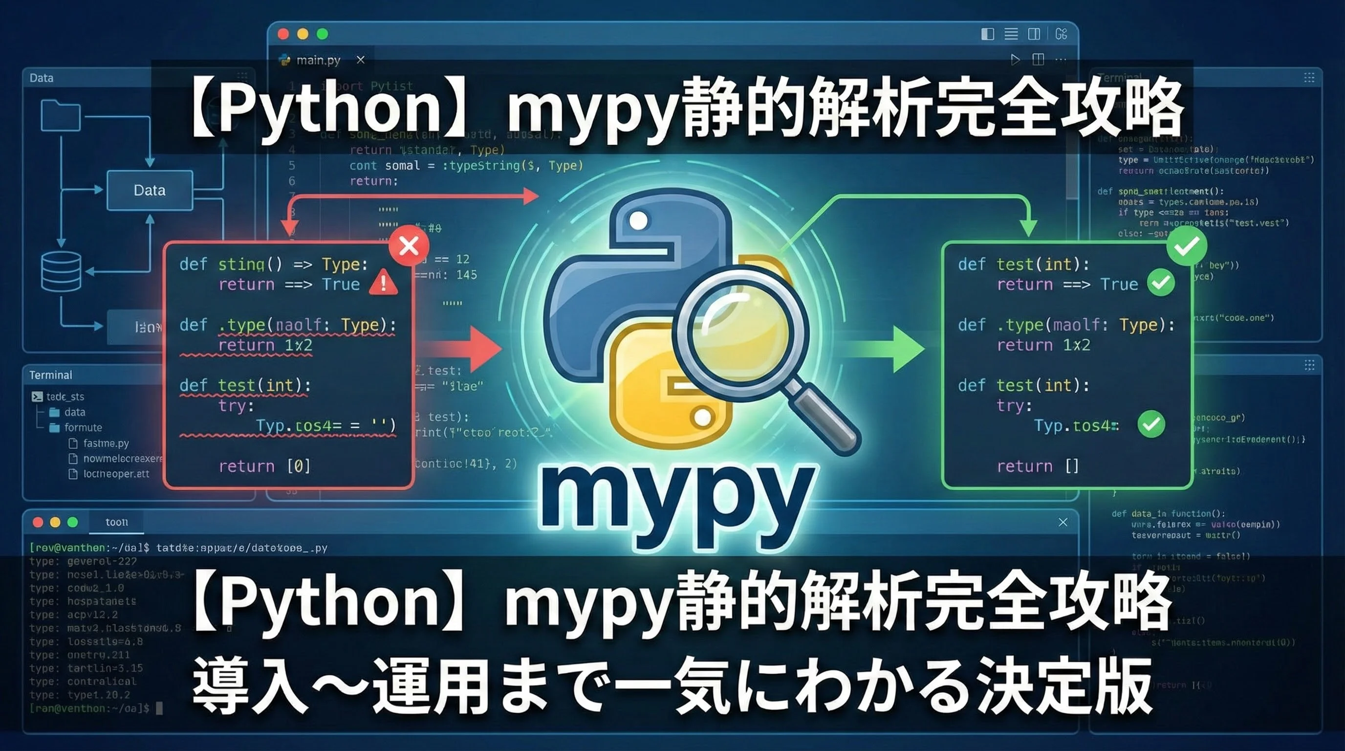 本記事では、mypyとは何かという基礎から導入・設定方法、実践的な型注釈テクニック、チーム開発への組み込み方までを、図解とサンプルコードを交えながら丁寧に解説します。